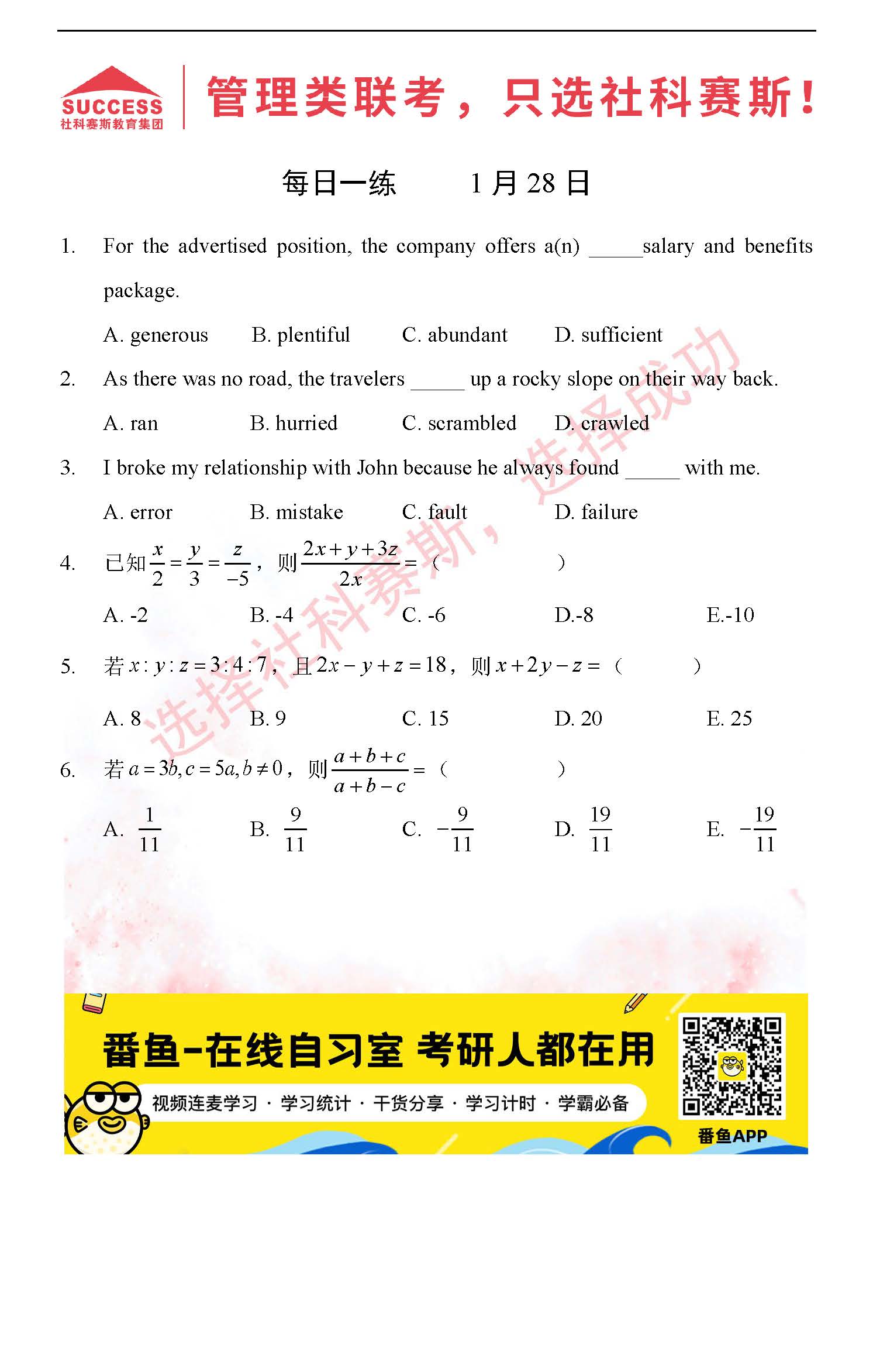 以上就是社科賽斯MBA備考網小編為大家整理2022管理類聯考1月28日每日一練及答案的全部內容,希望各位考生堅持利用起來,更多每日一練內容請持續關注MBA備考網管理類聯考每日一練。