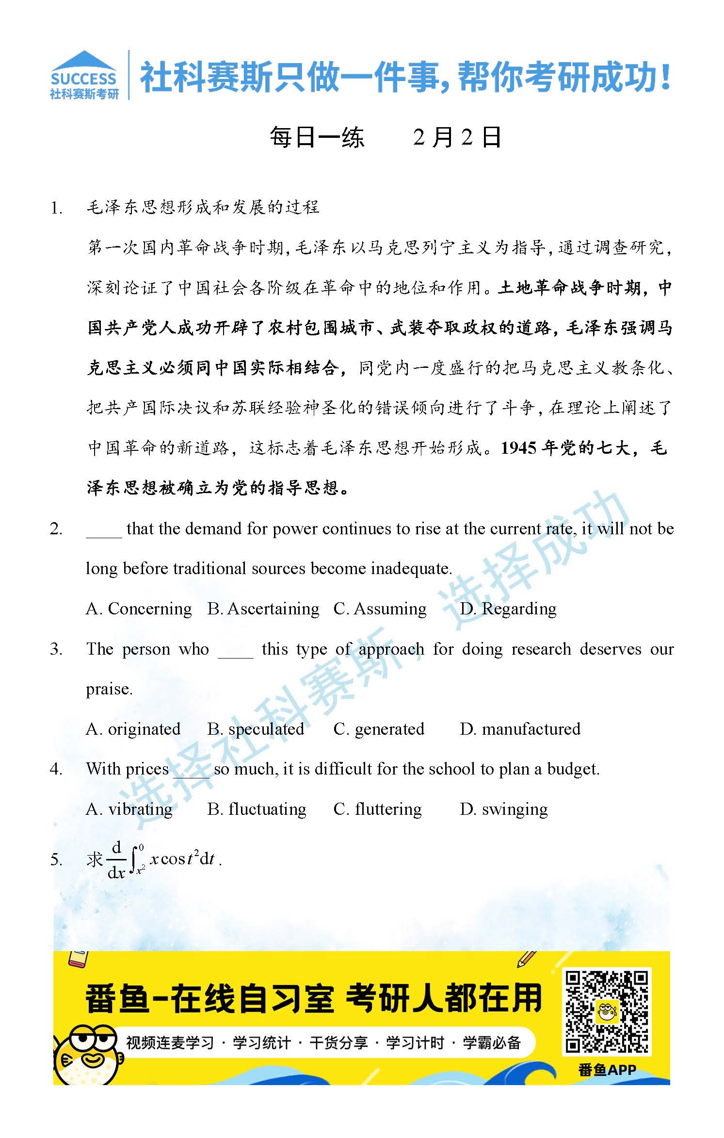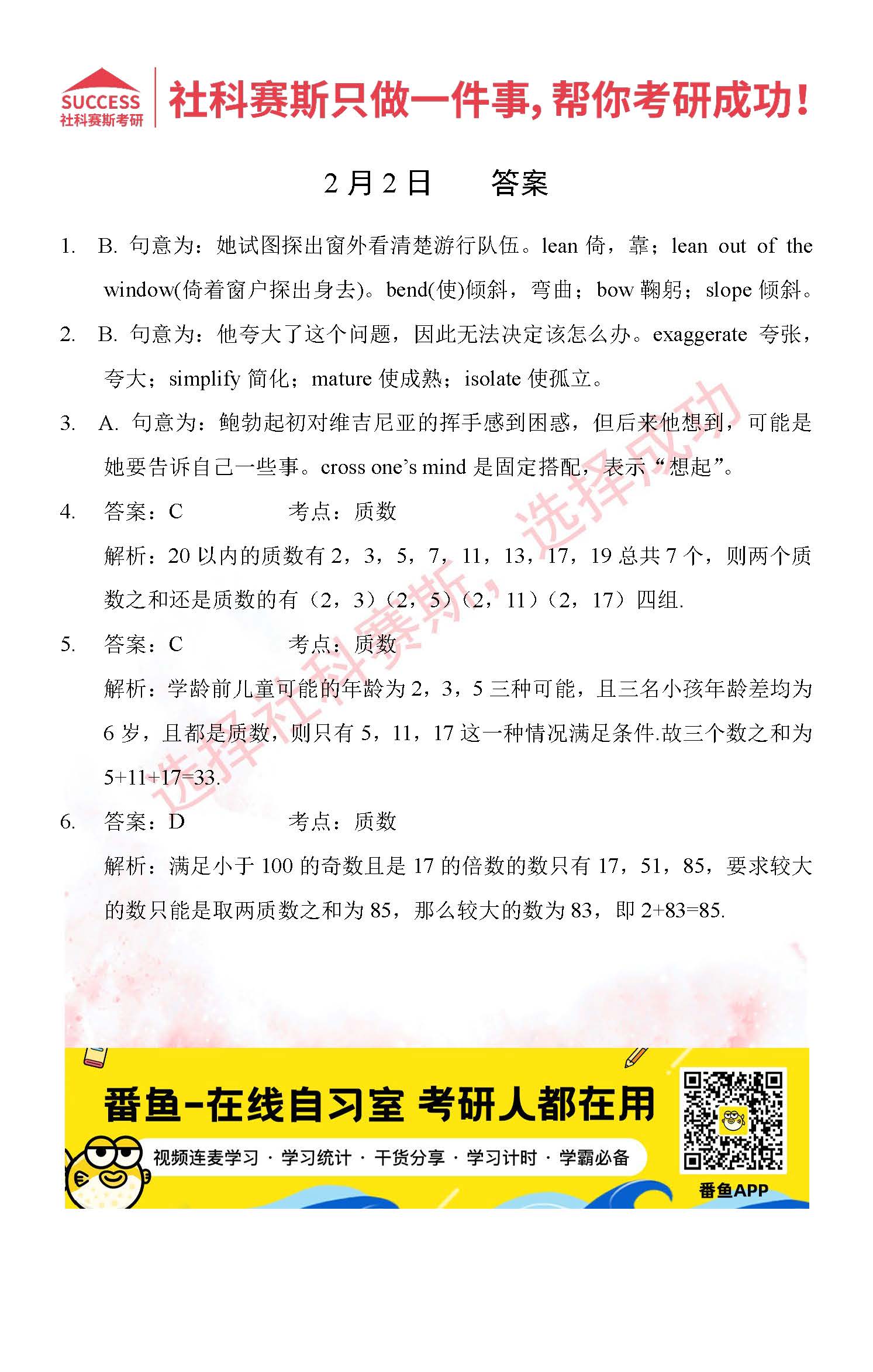 導(dǎo)讀:考研是一場(chǎng)持久戰(zhàn),保持良好的學(xué)習(xí)習(xí)慣,是能確保復(fù)習(xí)高效的關(guān)鍵。今天社科賽斯MBA備考網(wǎng)小編整理了“2022管理類聯(lián)2月2日每日一練及答案”的內(nèi)容,希望能對(duì)廣大考生有所幫助。