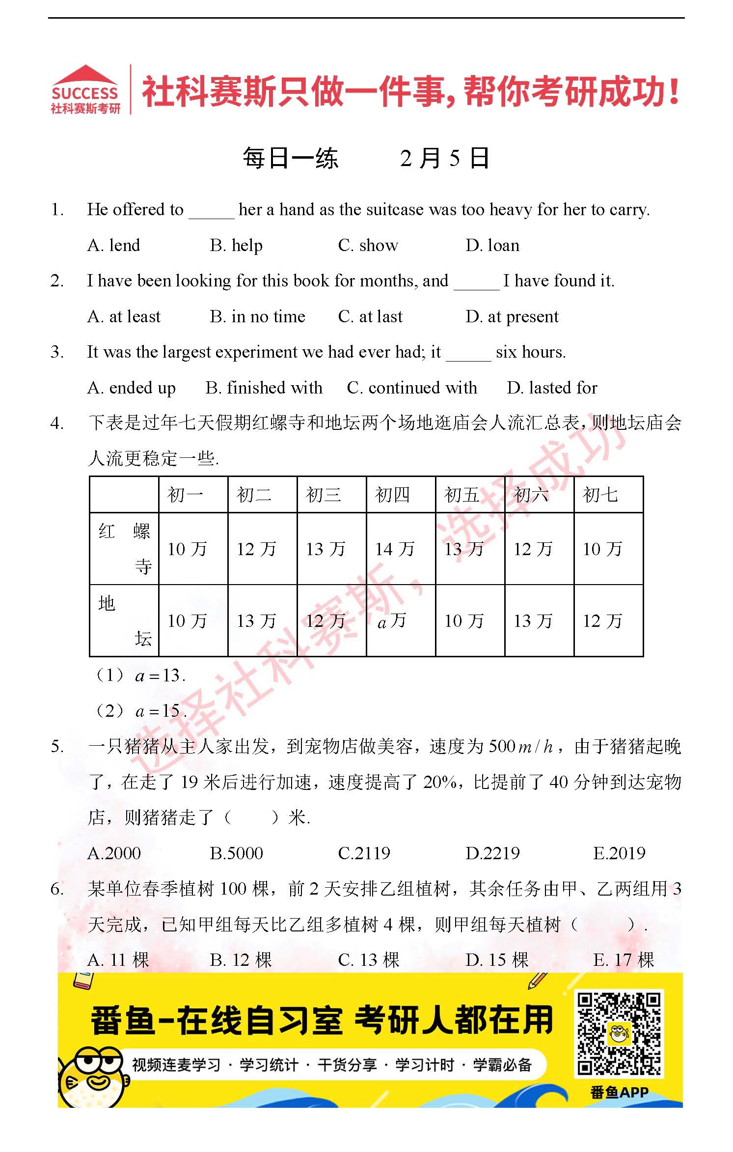 導(dǎo)讀:考研是一場(chǎng)持久戰(zhàn),保持良好的學(xué)習(xí)習(xí)慣,是能確保復(fù)習(xí)高效的關(guān)鍵。今天社科賽斯MBA備考網(wǎng)小編整理了“2022管理類聯(lián)2月5日每日一練及答案”的內(nèi)容,希望能對(duì)廣大考生有所幫助。