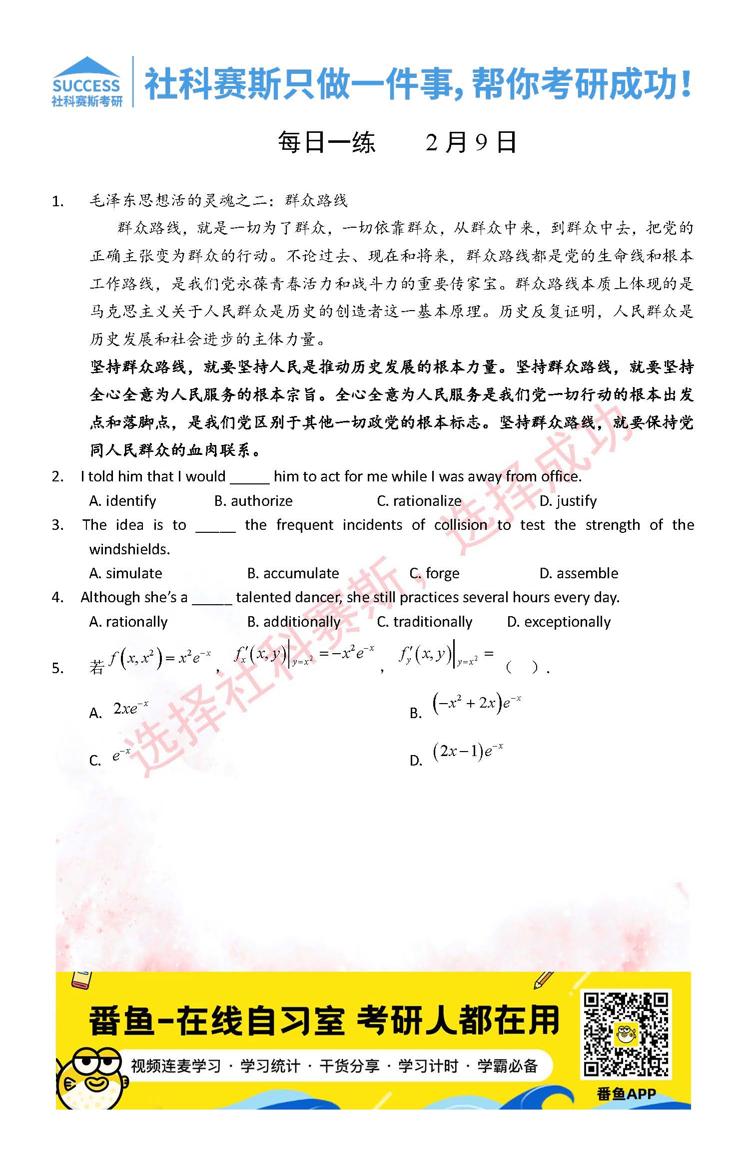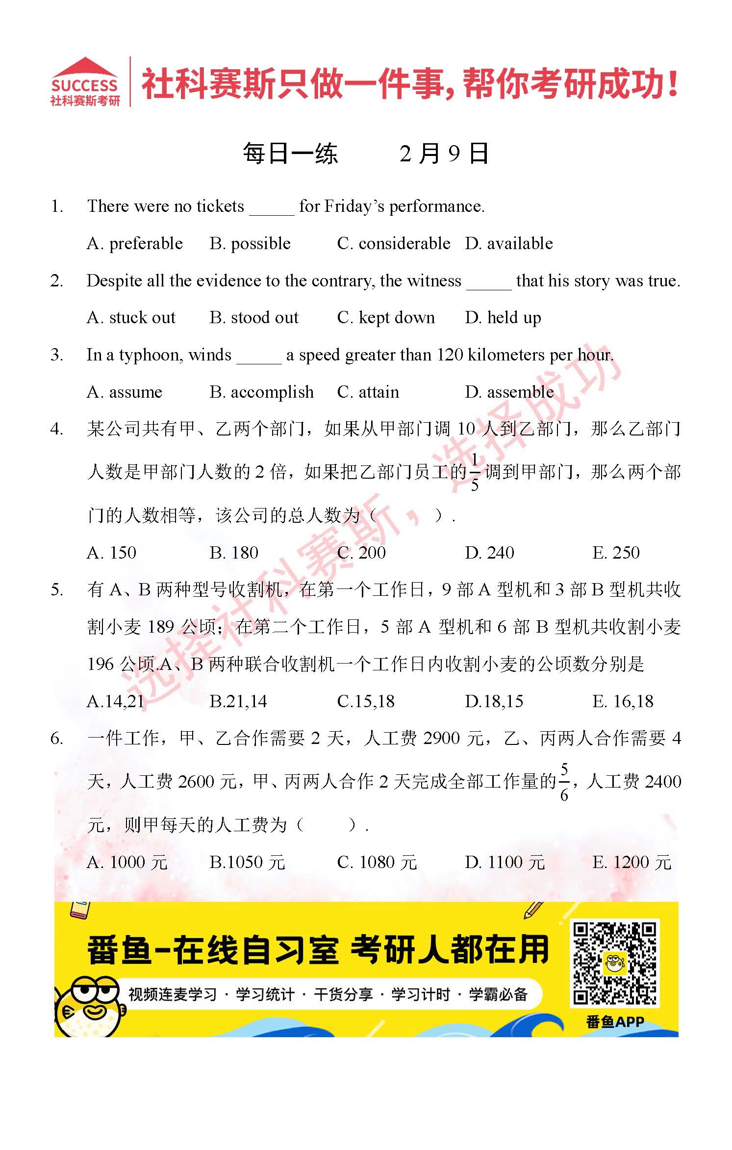 首頁> 管理類聯(lián)考每日一練 > 2022管理類聯(lián)考2月9日每日一練及答案