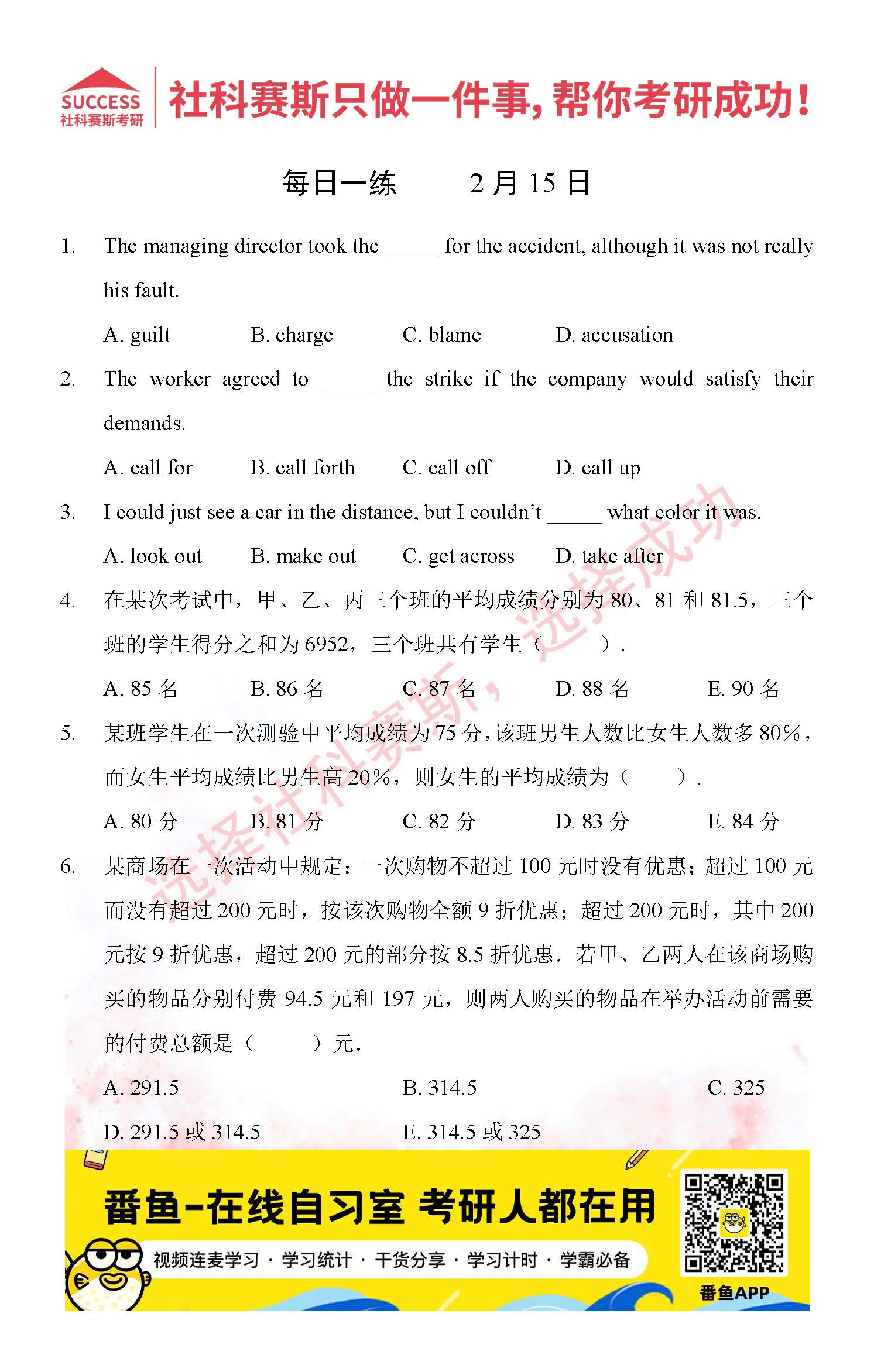 的全部內(nèi)容,希望各位考生堅(jiān)持利用起來,更多每日一練內(nèi)容請持續(xù)關(guān)注MBA備考網(wǎng)管理類聯(lián)考每日一練。