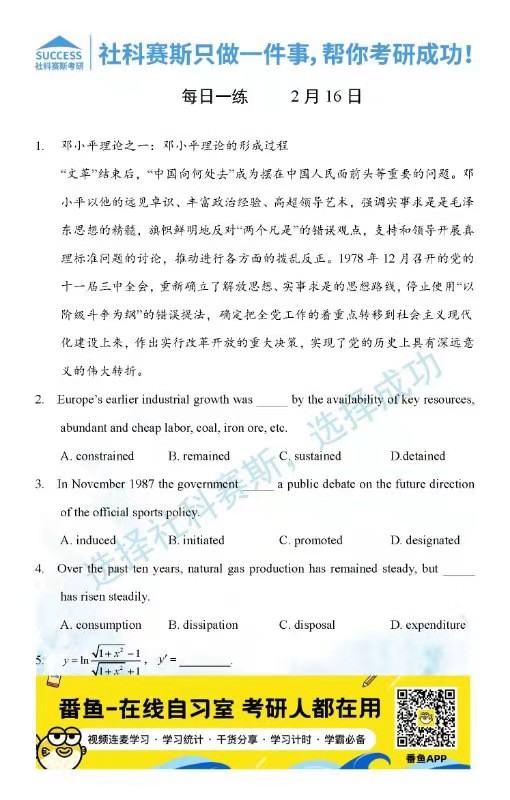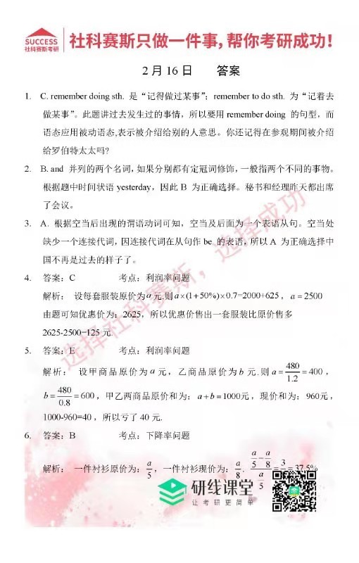 導(dǎo)讀:考研是一場持久戰(zhàn),保持良好的學(xué)習(xí)習(xí)慣,是能確保復(fù)習(xí)高效的關(guān)鍵。今天社科賽斯MBA備考網(wǎng)小編整理了“2022管理類聯(lián)2月16日每日一練及答案”的內(nèi)容,希望能對廣大考生有所幫助。