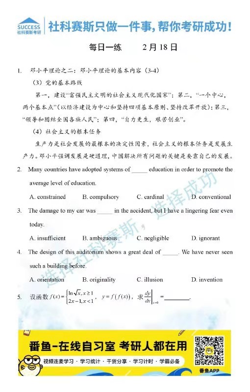 導(dǎo)讀:考研是一場持久戰(zhàn),保持良好的學(xué)習(xí)習(xí)慣,是能確保復(fù)習(xí)高效的關(guān)鍵。今天社科賽斯MBA備考網(wǎng)小編整理了“2022管理類聯(lián)2月18日每日一練及答案”的內(nèi)容,希望能對廣大考生有所幫助。