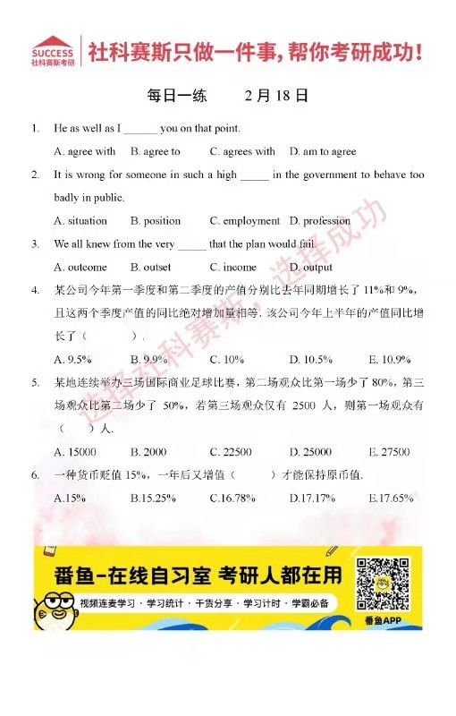 2022管理類聯(lián)考2月18日每日一練及答案”