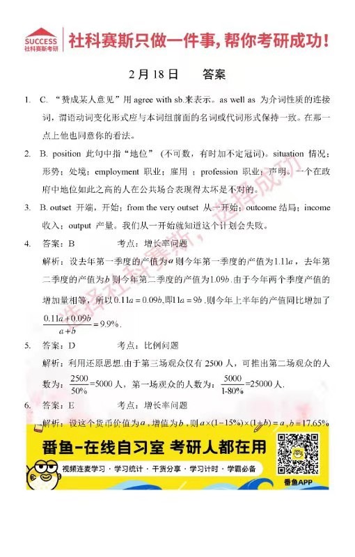 的全部內(nèi)容,希望各位考生堅持利用起來,更多每日一練內(nèi)容請持續(xù)關(guān)注MBA備考網(wǎng)管理類聯(lián)考每日一練。