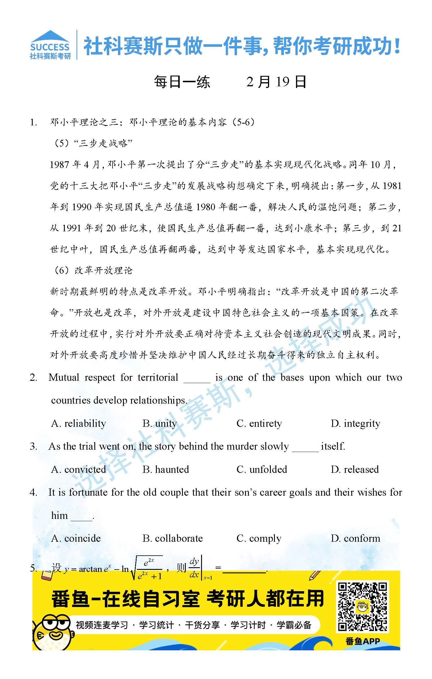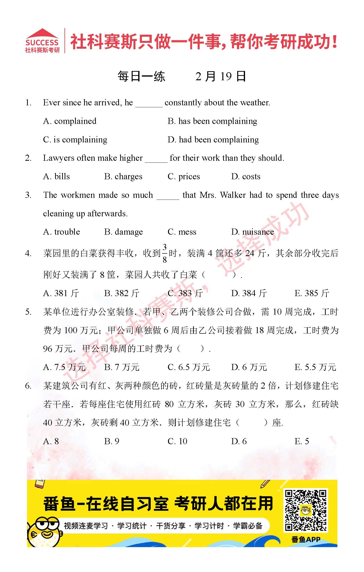 首頁> 管理類聯(lián)考每日一練 > 2022管理類聯(lián)考2月19日每日一練及答案