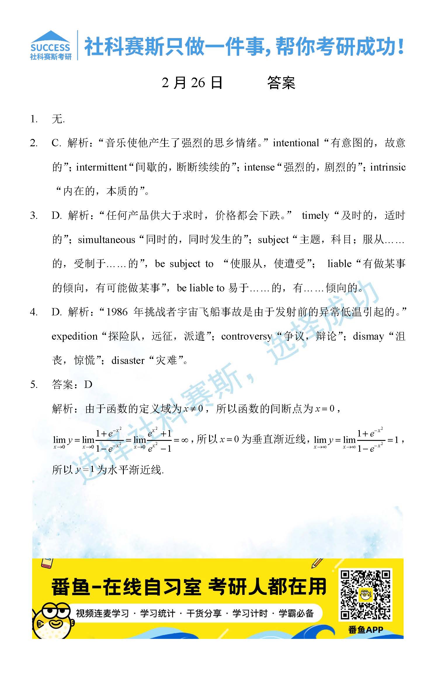 首頁> 管理類聯(lián)考每日一練 > 2022管理類聯(lián)考2月26日每日一練及答案