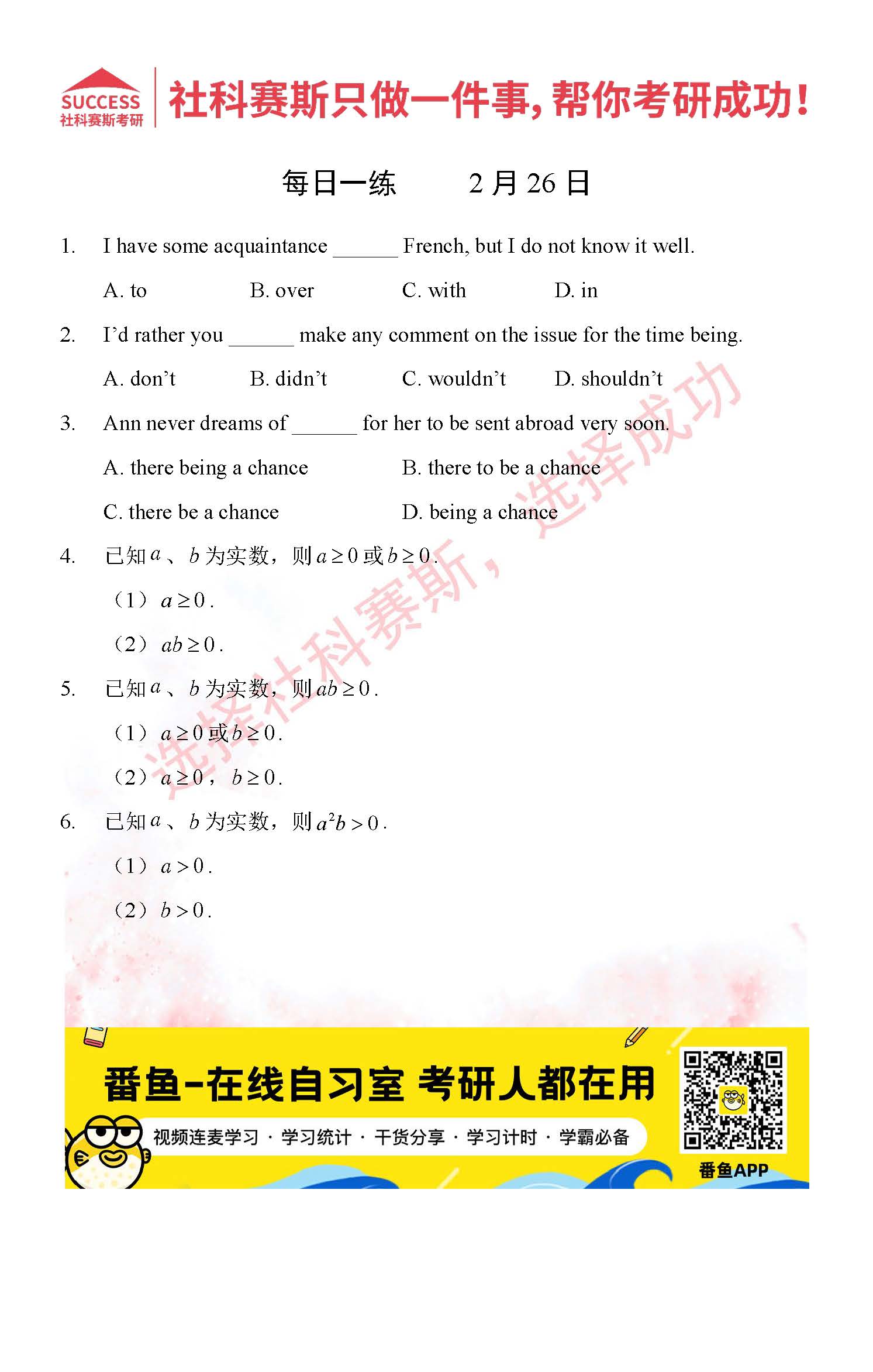 導讀:考研是一場持久戰(zhàn),保持良好的學習習慣,是能確保復習高效的關鍵。今天社科賽斯MBA備考網(wǎng)小編整理了“2022管理類聯(lián)2月26日每日一練及答案”的內(nèi)容,希望能對廣大考生有所幫助。