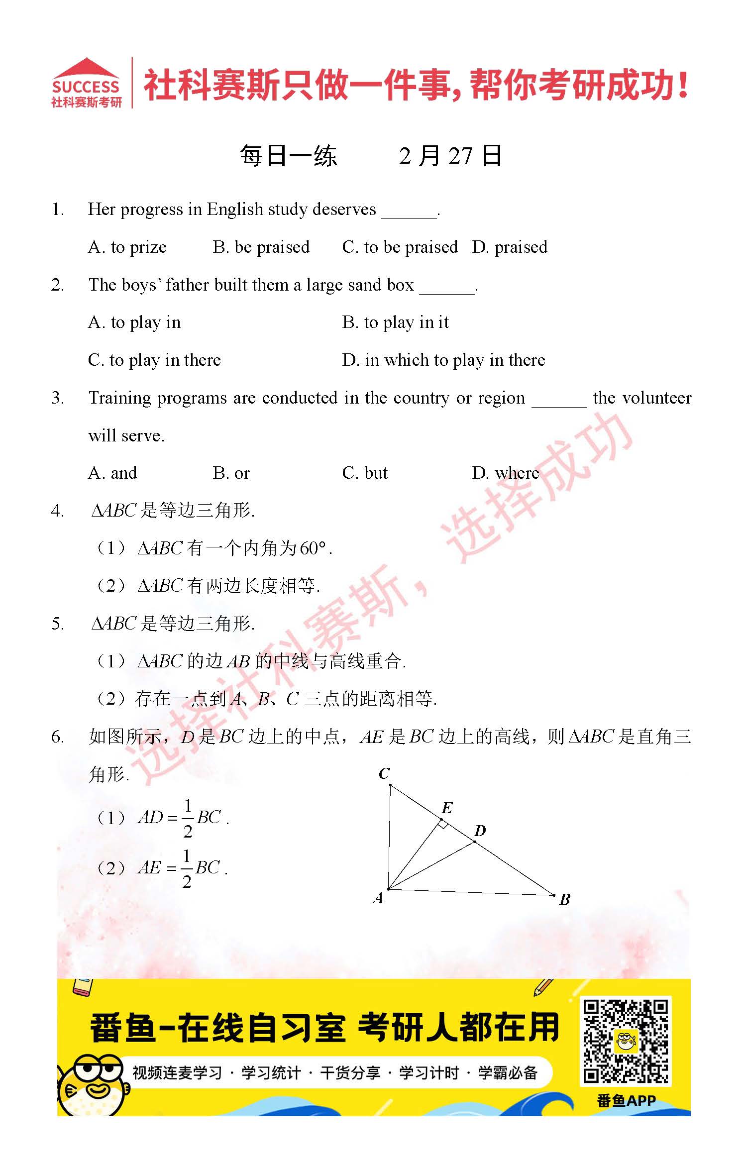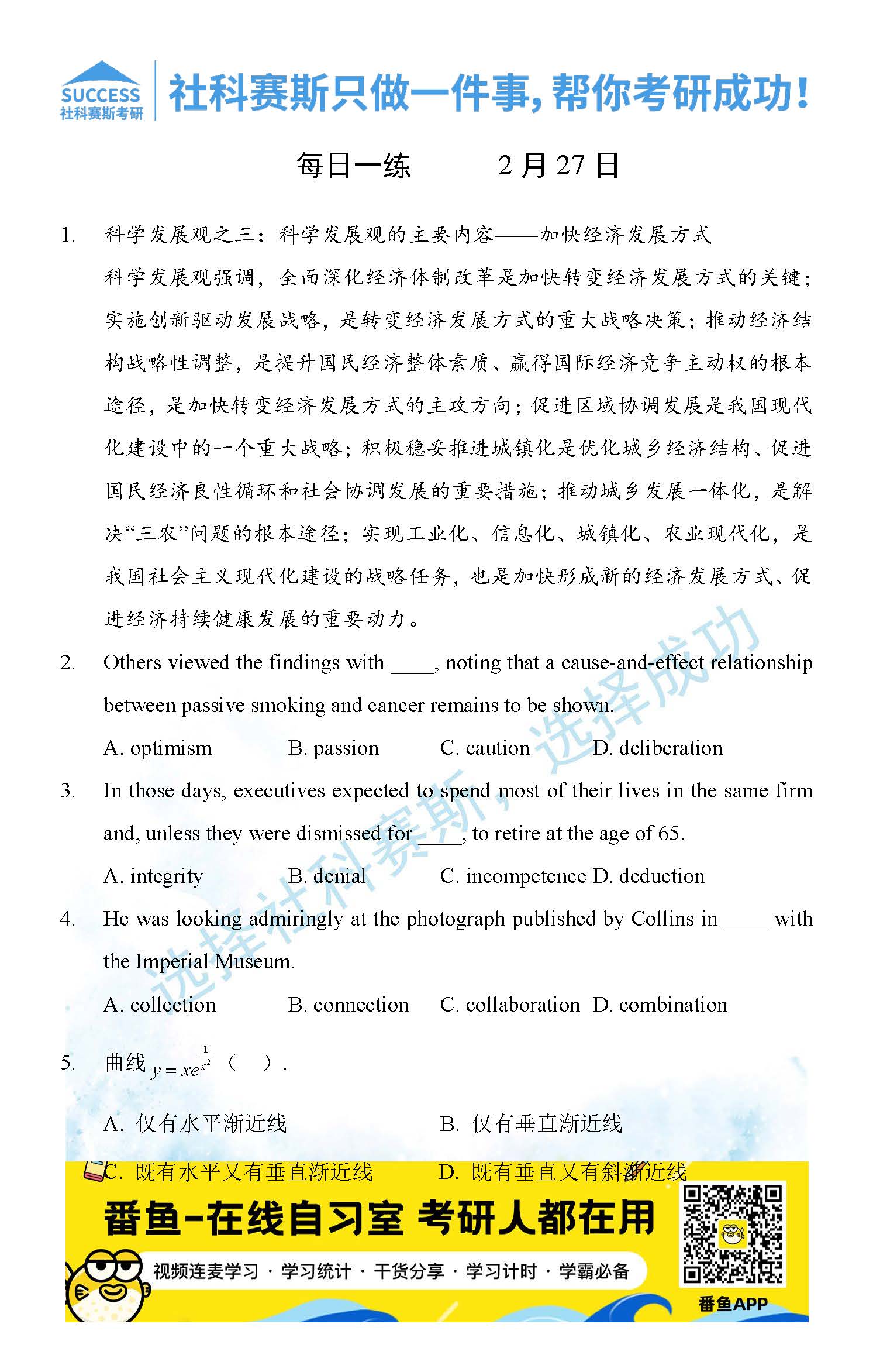 導(dǎo)讀:考研是一場(chǎng)持久戰(zhàn),保持良好的學(xué)習(xí)習(xí)慣,是能確保復(fù)習(xí)高效的關(guān)鍵。今天社科賽斯MBA備考網(wǎng)小編整理了“2022管理類(lèi)聯(lián)2月27日每日一練及答案”的內(nèi)容,希望能對(duì)廣大考生有所幫助。
