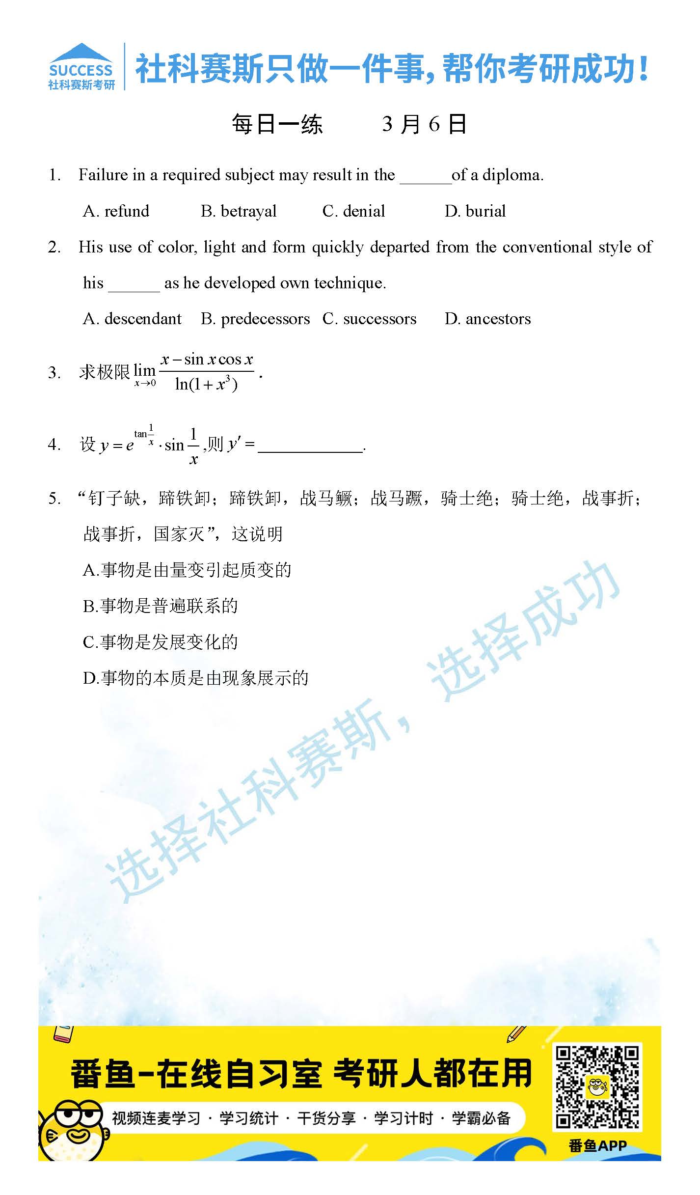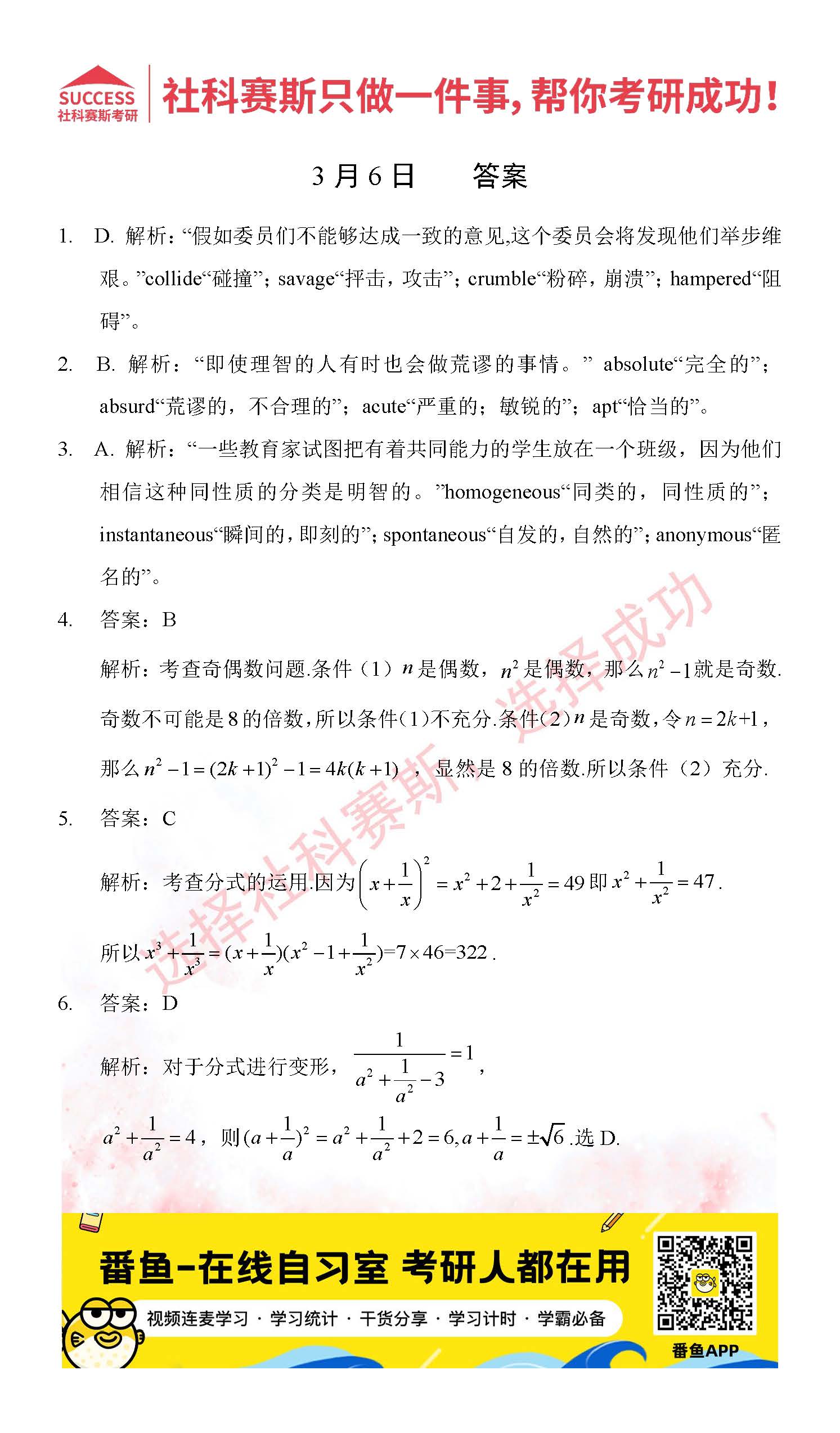 以上就是社科賽斯MBA備考網小編為大家整理2022管理類聯考3月6日每日一練及答案的全部內容,希望各位考生堅持利用起來,更多每日一練內容請持續關注MBA備考網管理類聯考每日一練。