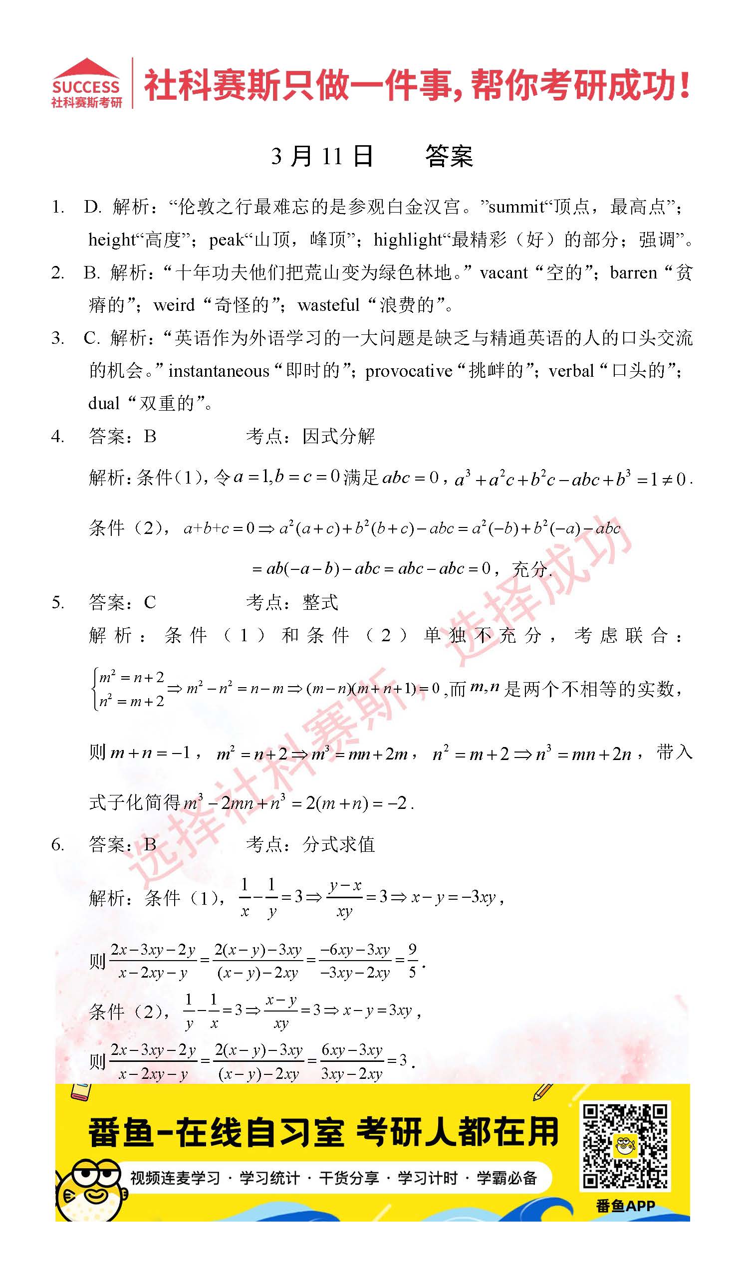 的全部內(nèi)容,希望各位考生堅(jiān)持利用起來,更多每日一練內(nèi)容請持續(xù)關(guān)注MBA備考網(wǎng)管理類聯(lián)考每日一練。