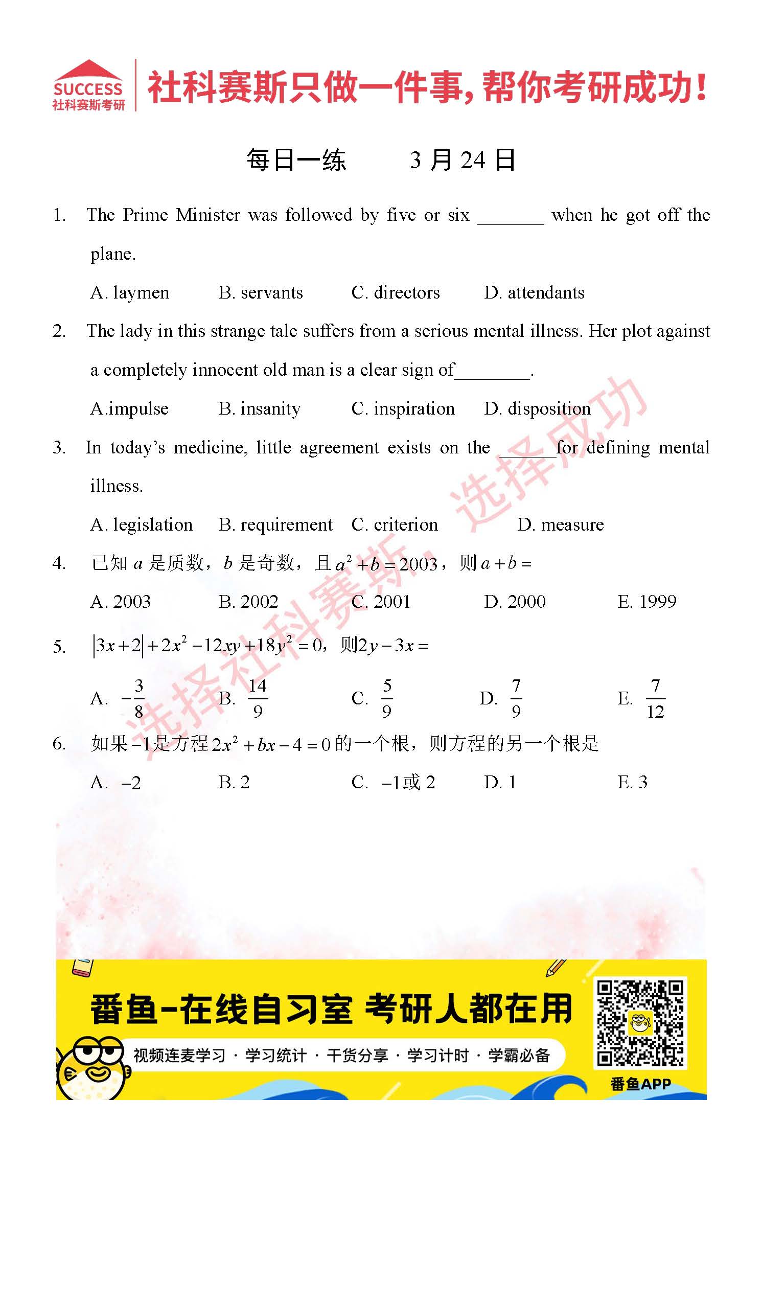 導讀:考研是一場持久戰,保持良好的學習習慣,是能確保復習高效的關鍵。今天社科賽斯MBA備考網小編整理了“2022管理類聯3月24日每日一練及答案”的內容,希望能對廣大考生有所幫助。