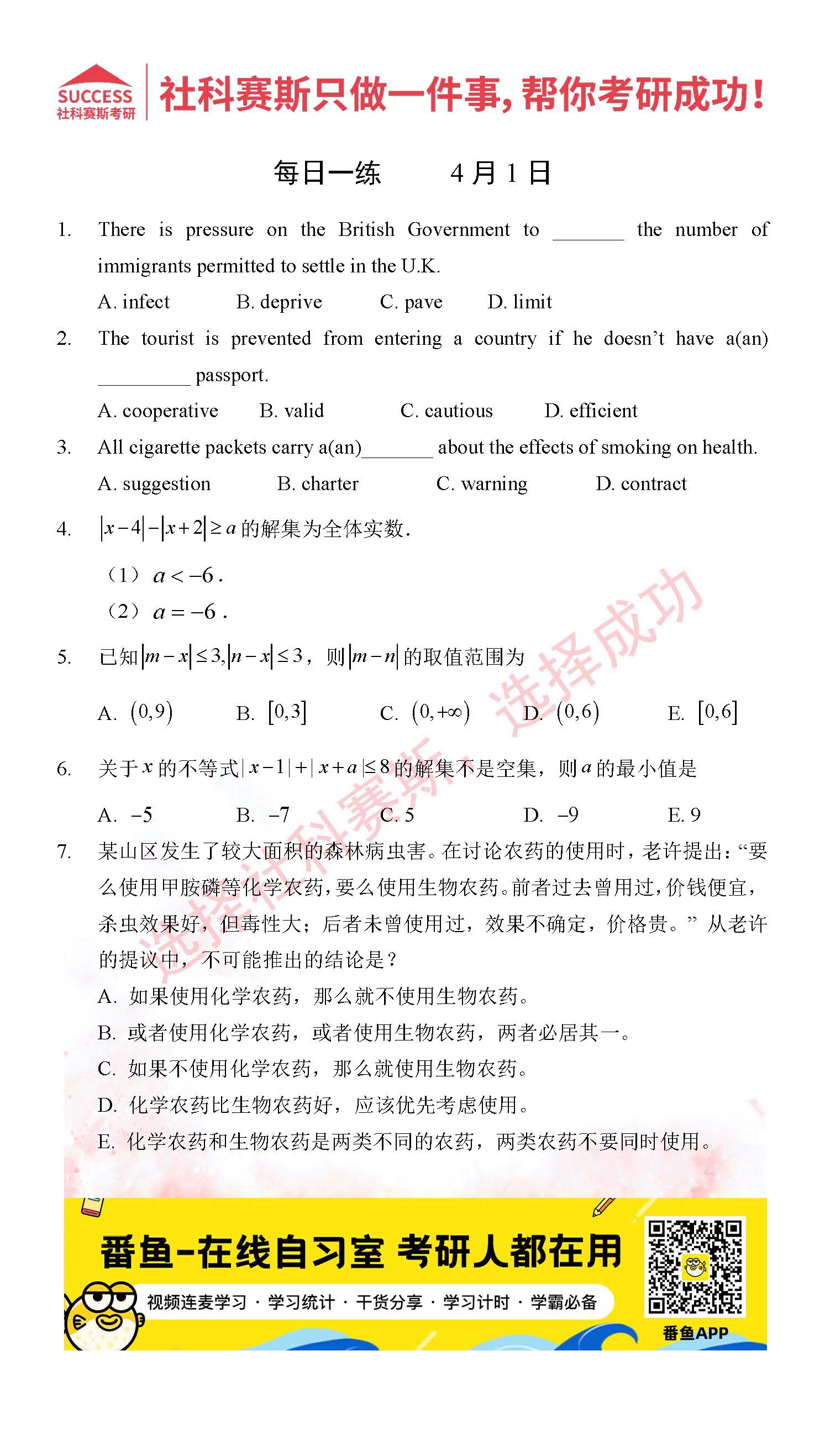 導讀:考研是一場持久戰,保持良好的學習習慣,是能確保復習高效的關鍵。今天社科賽斯MBA備考網小編整理了“2022管理類聯考4月1日每日一練及答案”的內容,希望能對廣大考生有所幫助。