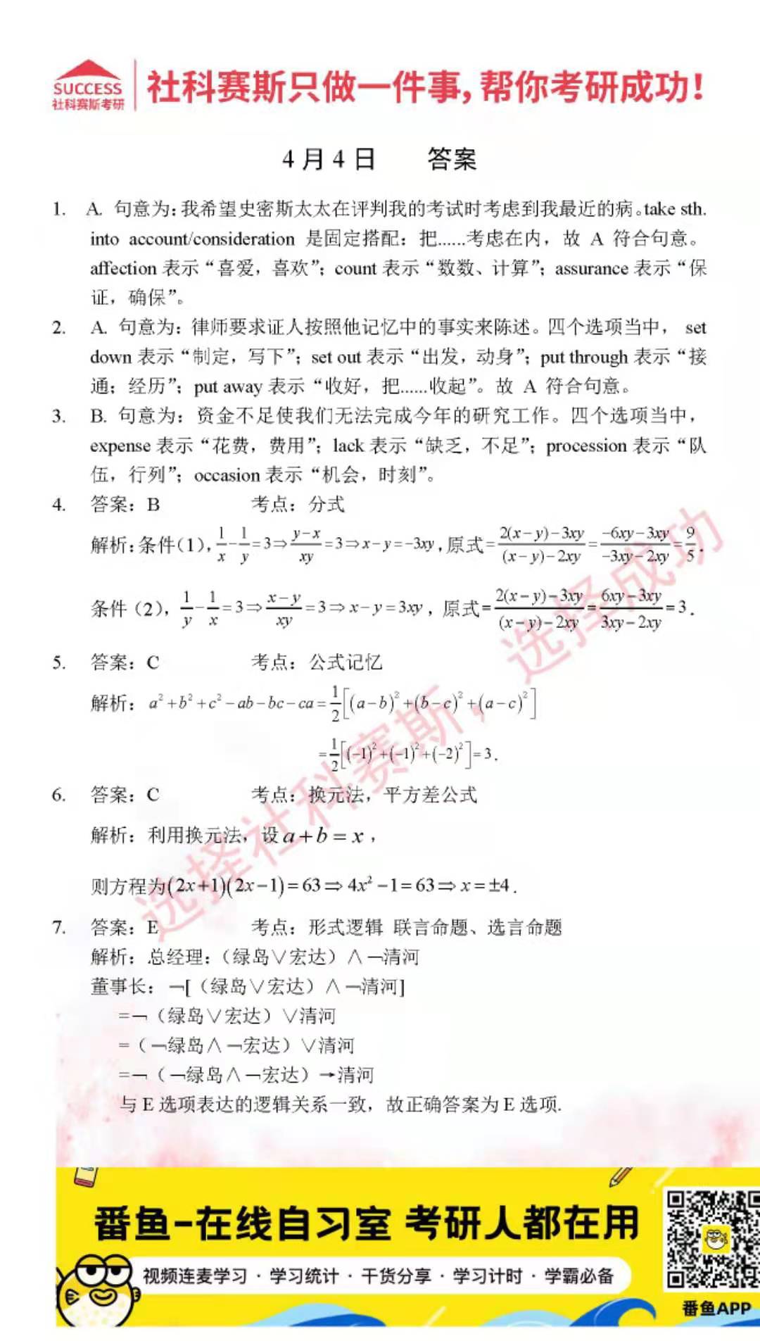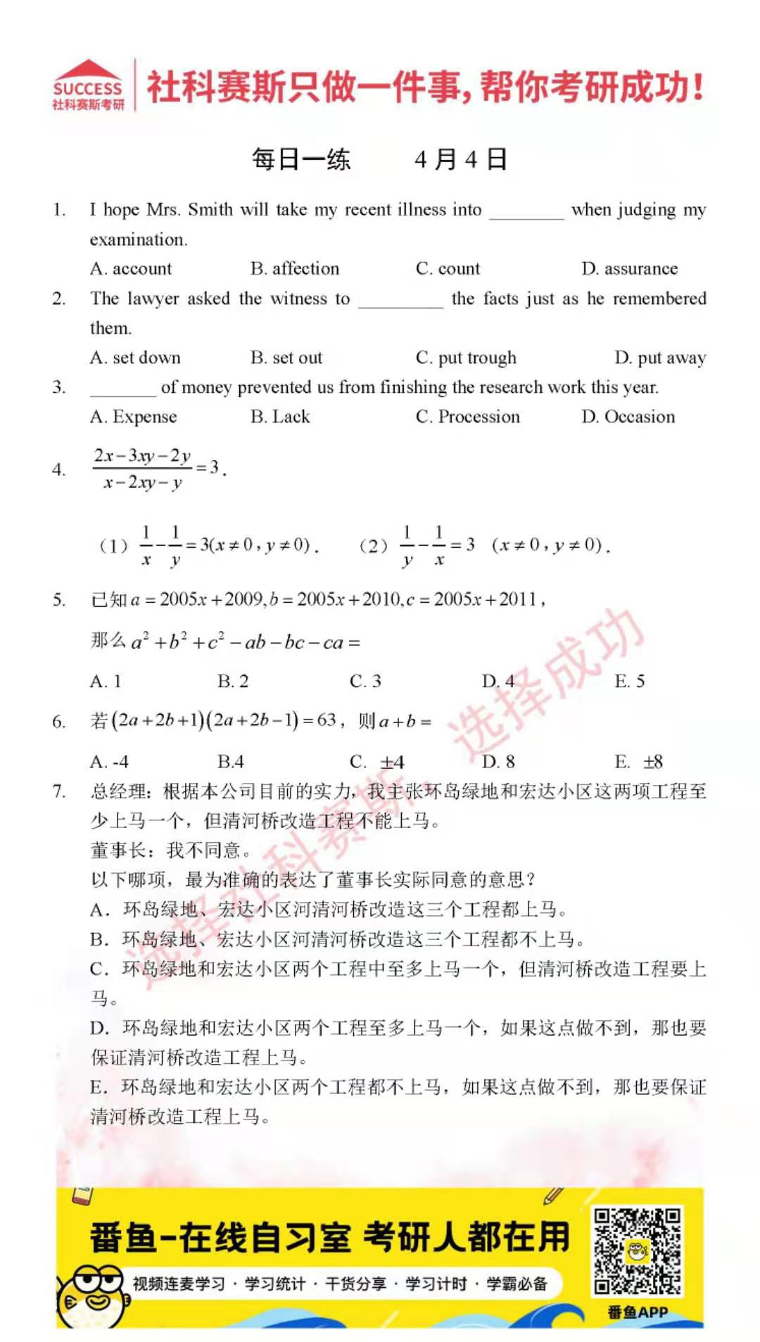 導讀:考研是一場持久戰,保持良好的學習習慣,是能確保復習高效的關鍵。今天社科賽斯MBA備考網小編整理了“2022管理類聯考4月4日每日一練及答案”的內容,希望能對廣大考生有所幫助。