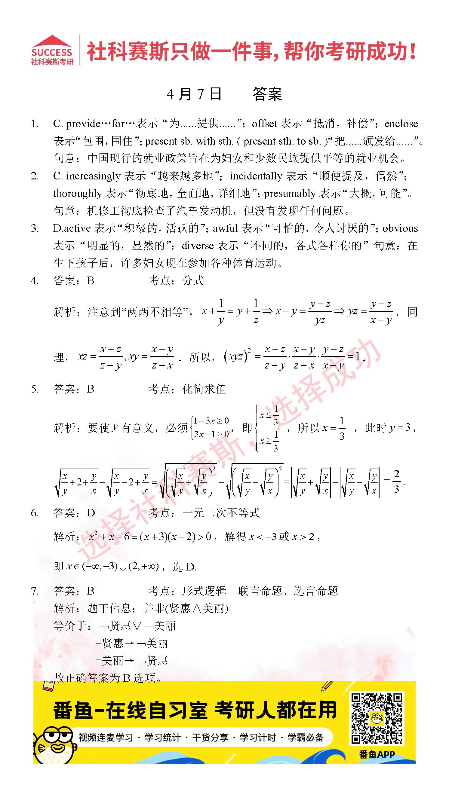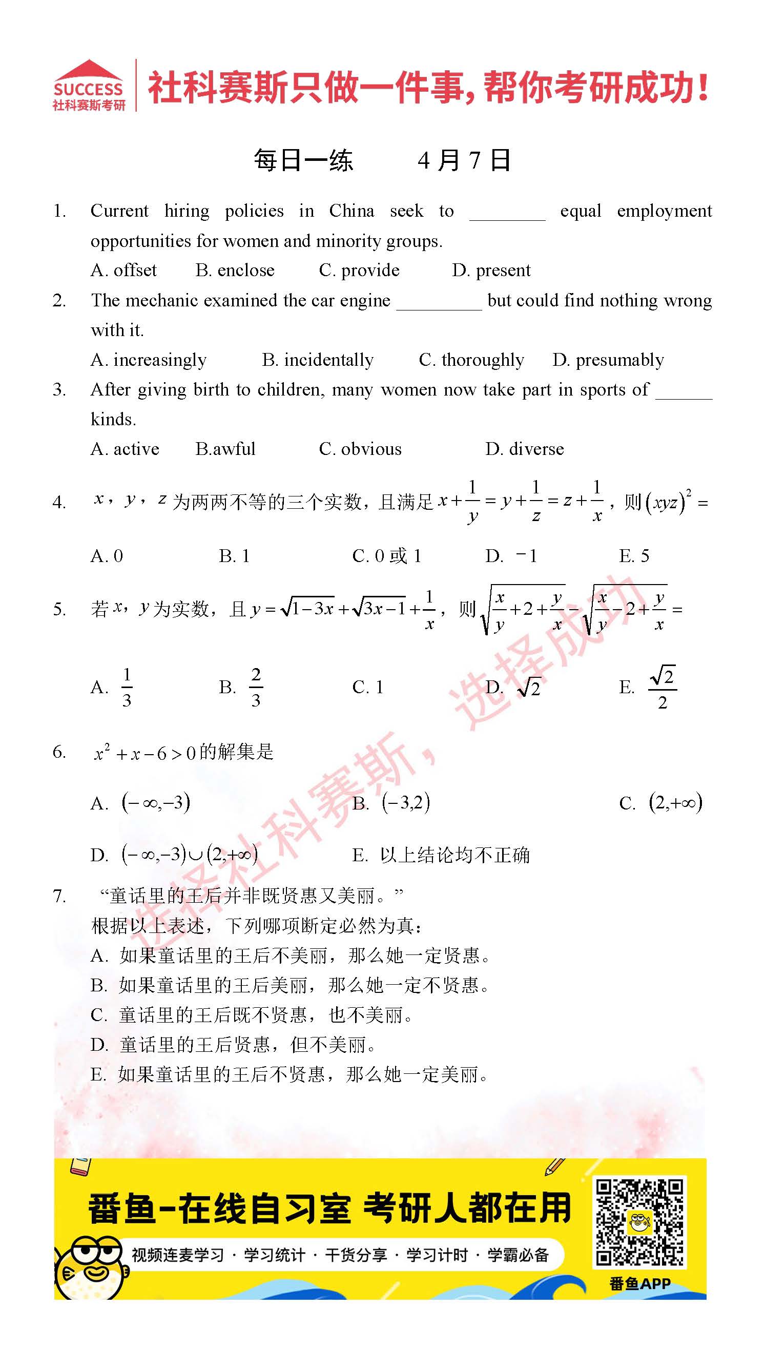 導讀:考研是一場持久戰,保持良好的學習習慣,是能確保復習高效的關鍵。今天社科賽斯MBA備考網小編整理了“2022管理類聯考4月7日每日一練及答案”的內容,希望能對廣大考生有所幫助。