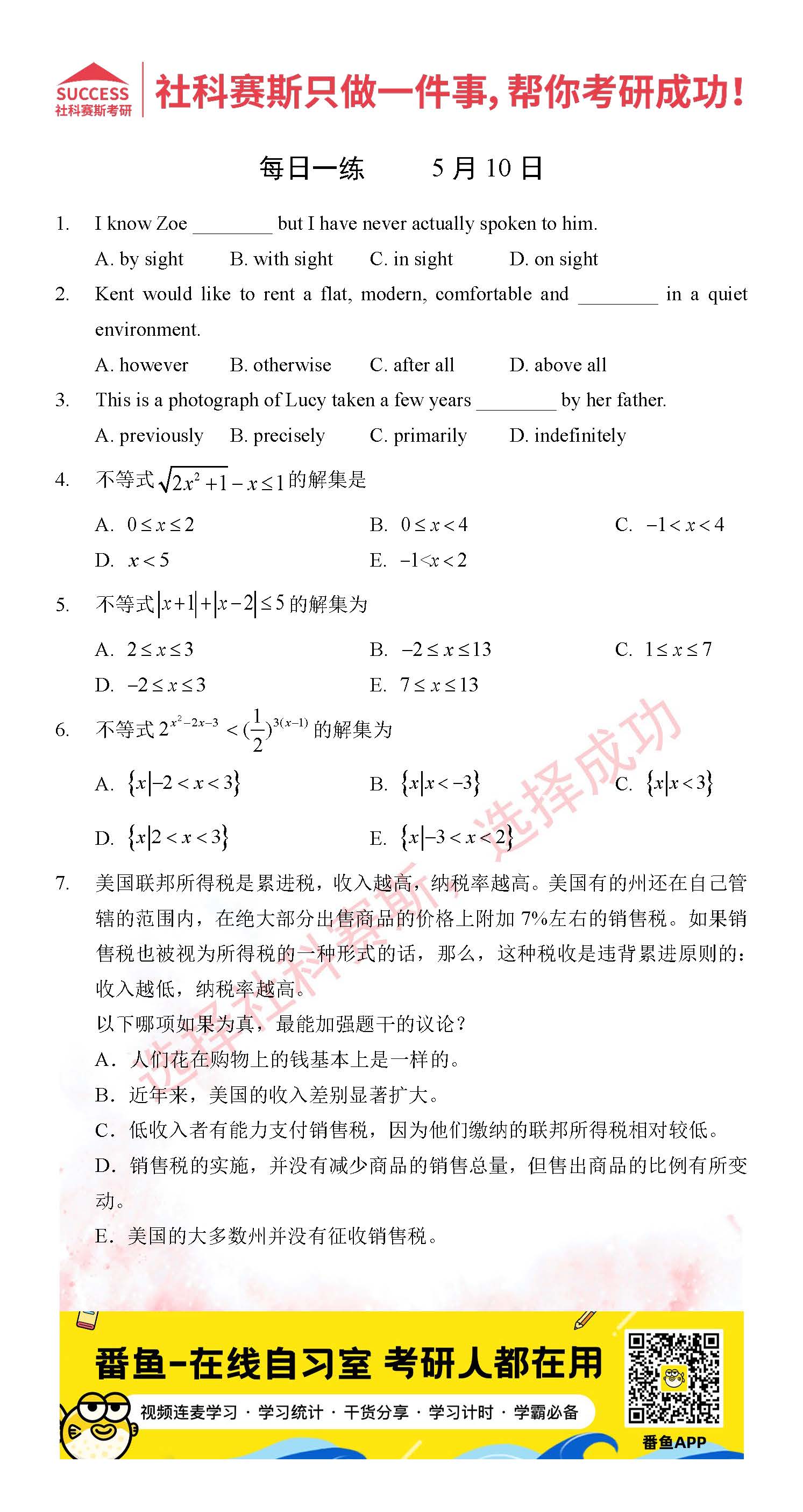 導讀:考研是一場持久戰,保持良好的學習習慣,是能確保復習高效的關鍵。今天社科賽斯MBA備考網小編整理了“2022管理類聯考5月10日每日一練及答案”的內容,希望能對廣大考生有所幫助。