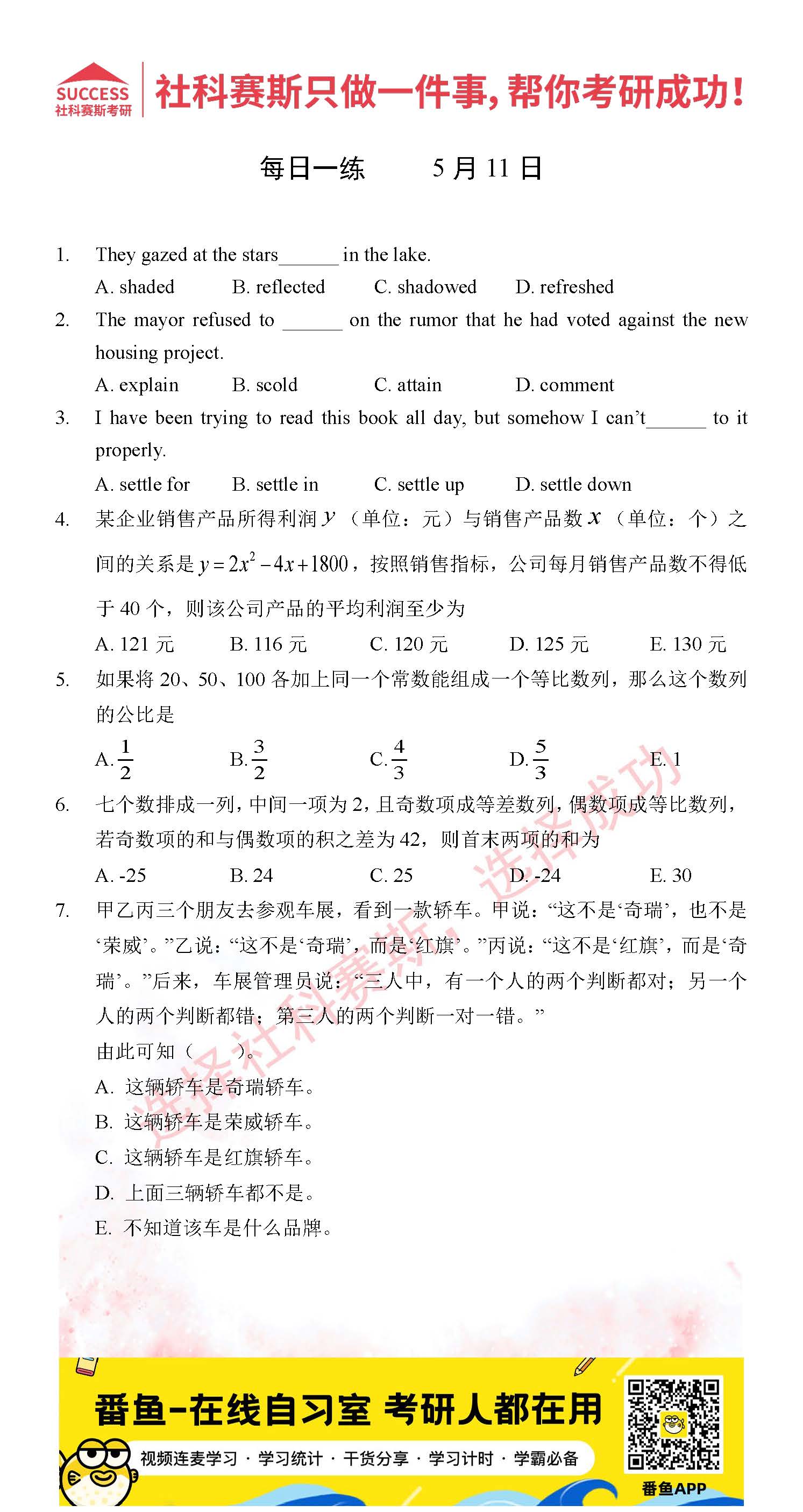 首頁> 管理類聯(lián)考每日一練 > 2022管理類聯(lián)考5月11日每日一練及答案