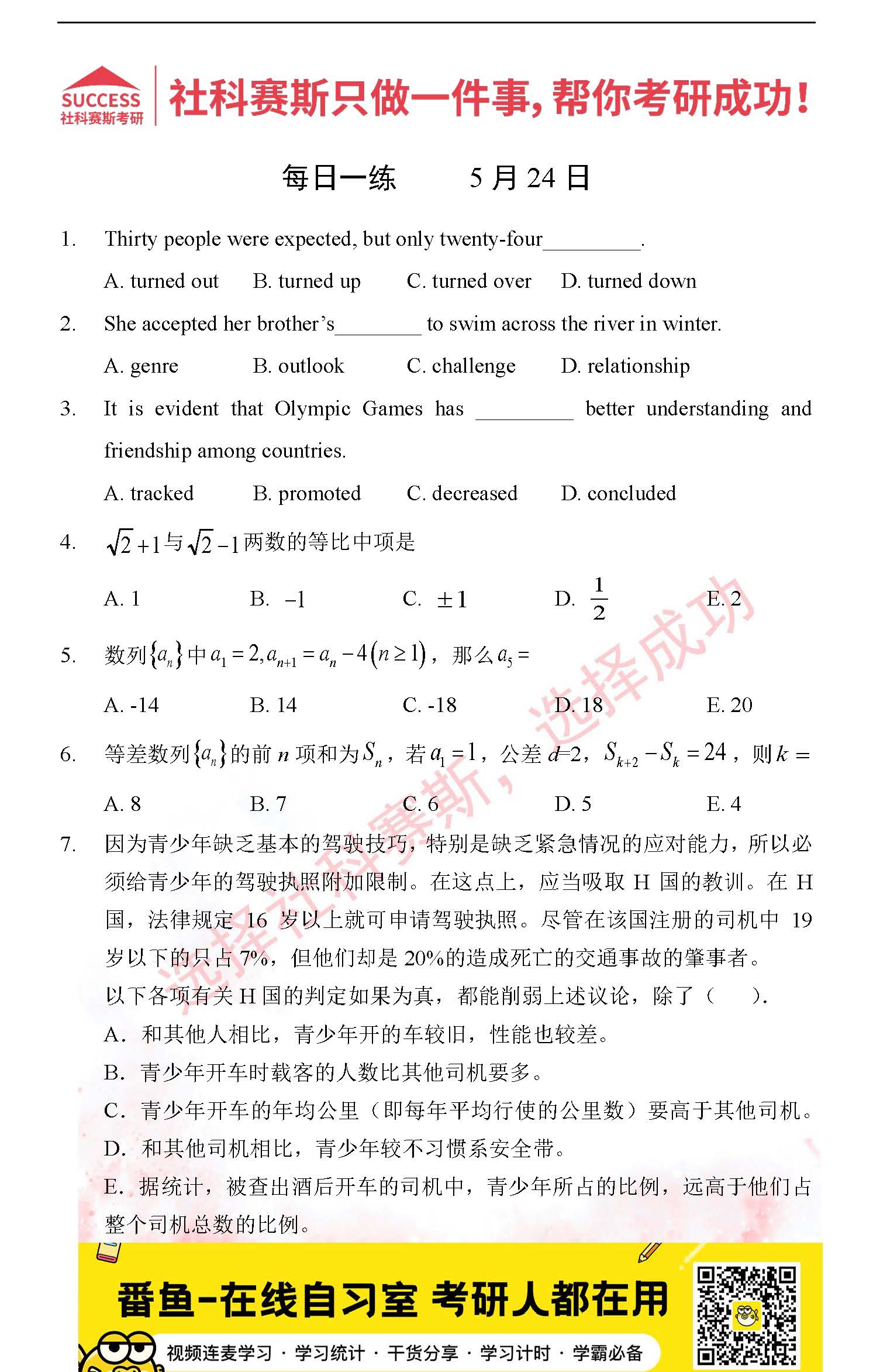 導讀:考研是一場持久戰,保持良好的學習習慣,是能確保復習高效的關鍵。今天社科賽斯MBA備考網小編整理了“2022管理類聯考5月24日每日一練及答案”的內容,希望能對廣大考生有所幫助。