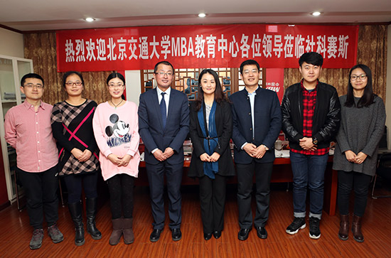 “百年交大,百年經管”――橫跨三個世紀的北京交通大學作為中國一所專門培養管理人才的高校,MBA項目在北交大經管學院落腳,二十多年來取得了重大發展。2016年1月6日,明媚的陽光照散了久日的霧霾,在這樣一個美好的天氣中,社科賽斯(SUCCESS)教育集團北京總部迎來了尊貴的客人――北京交通大學MBA教育工作者,分別是北京交通大學MBA教育中心主任左莉副教授,MBA中心苗慧老師、李娜老師、邢敏老師、丁正陽老師。集團領導甄誠董事長、李發進校長,中國MBA教育網張晶波副總裁等核心領導熱情接待了到訪嘉賓。