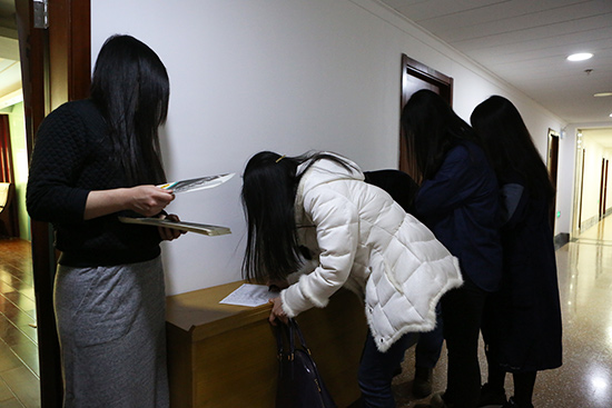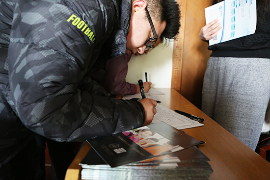 在調(diào)劑政策發(fā)布會開始之前,考生們紛紛簽到入場,他們在簽到表上填寫了各自的報考院校、成績和調(diào)劑意向。未等發(fā)布會正式開始,會場已是座無虛席,比肩接踵。據(jù)統(tǒng)計,今天參加調(diào)劑政策發(fā)布會的考生達130人。
