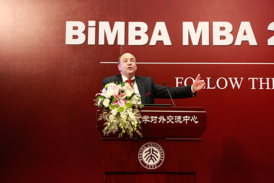 北大國發院BiMBA聯系院長楊壯博士介紹北京大學國家發展研究院BiMBA項目,希望學員們堅持北大理念,深刻體會BiMBA的核心價值觀16字方針:北大精神,社會情懷,國家發展,全球視野。
