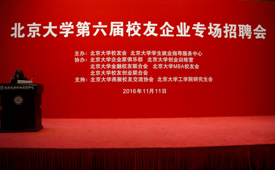 本屆招聘會由北京大學校友會、北京大學學生就業指導服務中心主辦,由北京大學企業家俱樂部、北京大學創業訓練營、北京大學金融校友聯合會、北京大學MBA校友會、北京大學校友創業聯合會協辦。為支持北大就業工作,服務廣大應屆畢業生就業,同時為校友企業招聘人才提供平臺,本屆招聘會吸引了近百家企業前來招賢納士。
