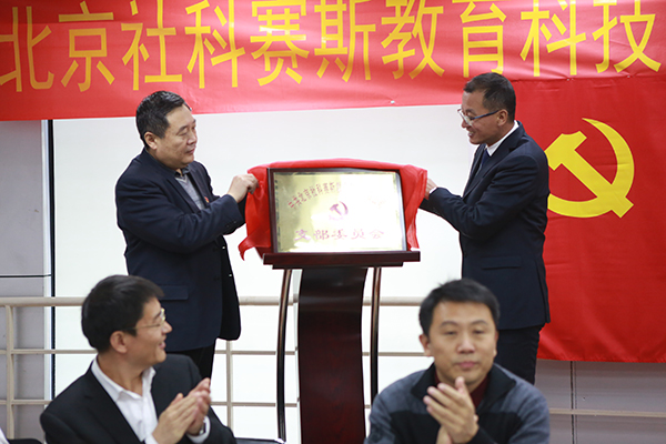 海淀街道工委組織部部長侯永卿和社科賽斯董事長甄誠共同為社科賽斯黨支部揭牌。