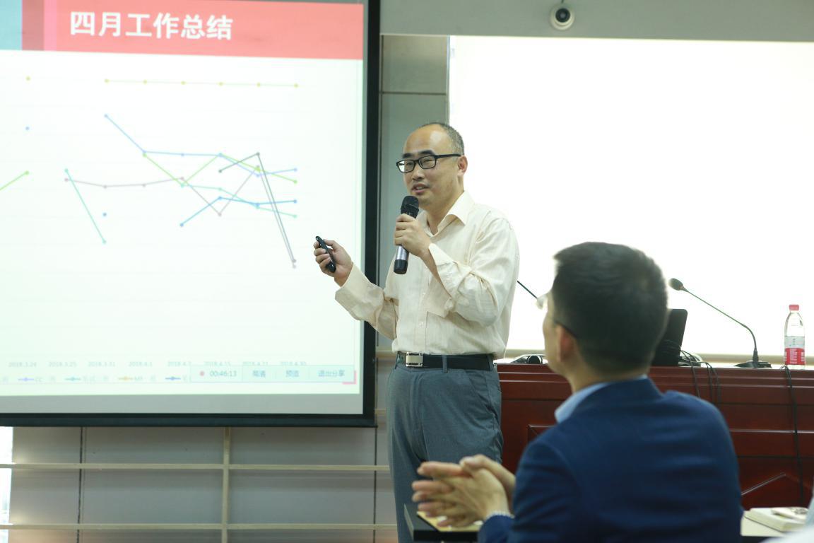 之后李??偨Y2018年4月份任務完成情況,針對各個業務單元一一分析,充分肯定大家4月份的不懈努力,同時指出市場行情優勢,大家奮斗的空間還非常大,更加期待所有社科人5月份的精彩表現。