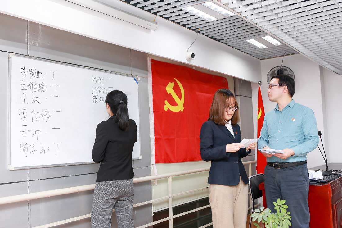 在雄壯的《國歌》聲中大會(huì)正式拉開帷幕。根據(jù)黨的最新精神與要求,首先進(jìn)行大會(huì)第一項(xiàng),選舉支部委員會(huì)委員。12名具有選舉資格的黨員進(jìn)行不記名投票,會(huì)議選舉李發(fā)進(jìn)同志、王雅崯同志、于帥同志為支部委員,報(bào)上級(jí)黨組織批準(zhǔn)后,將組成社科賽斯黨支部新一屆支部委員會(huì)。