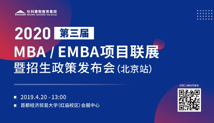 為幫助考生與院校間搭建透明、互信、深入了解的交流平臺,打破區域的影響,實現項目齊全盡分享,直面院校知真相的目的。4月20日,將攜手首都經濟貿易大學MBA教育中心,聯合全國30所商學院主辦第三屆MBA教育展暨2020招生政策發布會(北京站),屆時各優秀商學院MBA招生辦主任親臨現場,為廣大考生提供真實、實用的報考新政策,3小時揭開全國知名商學院MBA項目“神秘面紗”。
