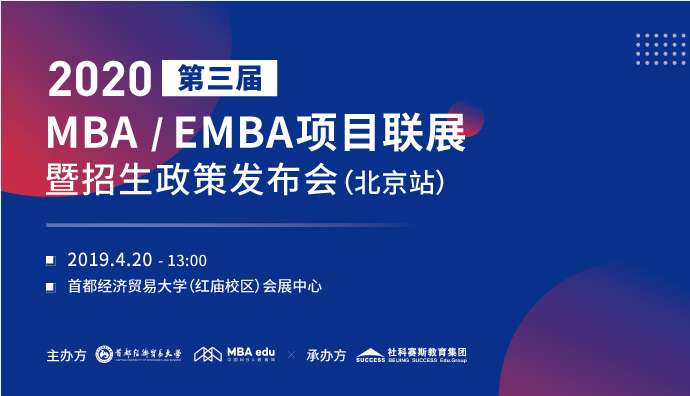為幫助考生與院校間搭建透明、互信、深入了解的交流平臺,打破區(qū)域的影響,實現(xiàn)項目齊全盡分享,直面院校知真相的目的。4月20日,中國MBA教育網(wǎng)將攜手首都經(jīng)濟貿(mào)易大學MBA教育中心,聯(lián)合全國30所商學院主辦第三屆MBA教育展暨2020招生政策發(fā)布會(北京站),屆時各優(yōu)秀商學院MBA招生辦主任親臨現(xiàn)場,為廣大考生提供真實、實用的報考新政策,3小時揭開全國知名商學院MBA項目“神秘面紗”。