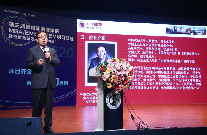 中國政法大學MBA中心執行副主任胡繼曄教授以“一主兩翼、創新融合發展,培養社會需要的復合型人才”的核心理念為主題,詳細介紹了其“七系一所一中心”的學科體系。他指出,中國政法大學倡導“學知識、識人脈、干實事”、實行理事會和MBA的結合、實現七系一所與MBA中心在教學體系上的結合的教育方針。其表示,中國政法大學MBA2020將擬招收全日制135人,非全日制50人,且提前面試即將進行,望廣大考生積極關注。