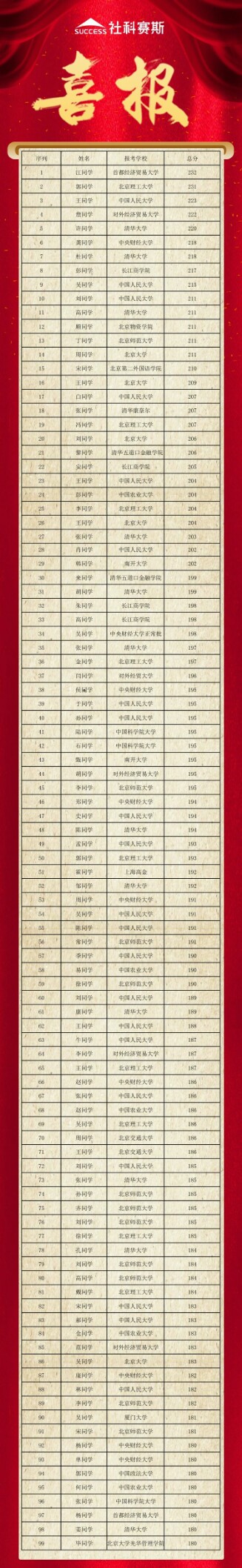 社科賽斯學員北大EMBA198分(滿分200分),勇奪北大EMBA聯考第一名