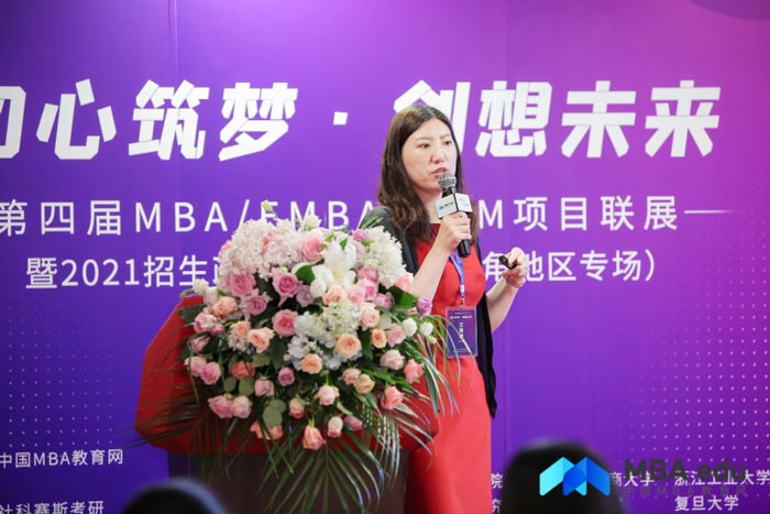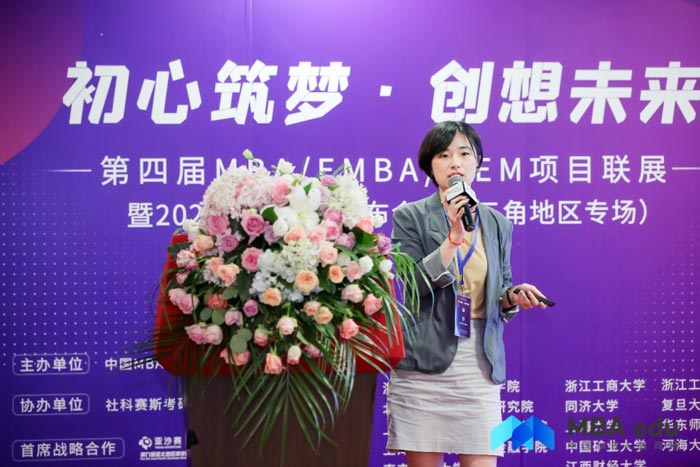 浙江工業大學MBA中心招生主管陳鴿老師圍繞院校發展概況、學生活動、師資力量、國際項目等內容進行詳細解讀。她表示,浙工大MBA以培養“東方智慧、國際視野、創新思維、社會責任,知行合一的商界精英”為目標,進行培養方案升級,協同培養,依托大數據智能化,推動中小企業實現成長,體現制造業領袖特色,其創業管理MBA尤為特色方向。
