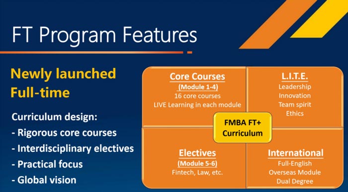 復旦大學泛海國際金融學院全日制FMBA項目市場部負責人張明熙老師表示,該項目首創MBA“+”概念,設有全日制金融MBA(英文)、非全日制金融MBA(中文),以“3R”(嚴謹、實踐、責任)項目理念,培養兼備國際金融視野、精曉國際金融之術,同時深諳中國金融實戰、運籌中國金融之道的,能夠為中國金融事業的崛起和國際金融時代的變革獻計獻力的全球金融領袖。