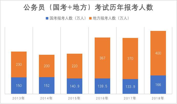 從近九年的報考人數(shù)來看,國考的報名人數(shù)呈現(xiàn)出了一定的穩(wěn)定性,基本維持在130萬-152萬人之間。而研究生考試的報名人數(shù)卻呈現(xiàn)出了快速上升的趨勢,2020年更是突破了300萬大關,達到了341萬人,是國考報考人數(shù)的2.5倍。但是是否能就此斷定,考公的人數(shù)不及考研黨們那?非也!非也!可別忘了人數(shù)眾多的地方公務員考試。公務員考試的招錄計劃堅持基層導向,各省市轄區(qū)的基層公務員缺口較大,崗位設置較多,所以地方公務員的招錄人數(shù)遠大于國考,報名人數(shù)自然也是“水漲船高”,2018年地方公務員考試的報考人數(shù)更是達到了400萬人之多。在如此龐大的公務員考試隊伍面前,考研黨們在人數(shù)上面就略顯勢單力薄了。