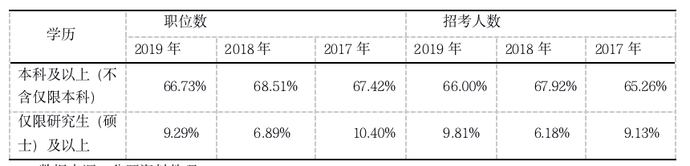 2017年-2019年國考學歷要求對比表