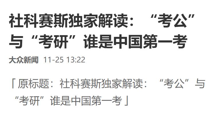 以上就是“大眾新聞報道 | 社科賽斯獨家解讀:“考公”與“考研”誰是中國第一考”的全部內容了,更多資訊,請持續(xù)關注MBA備考網!
