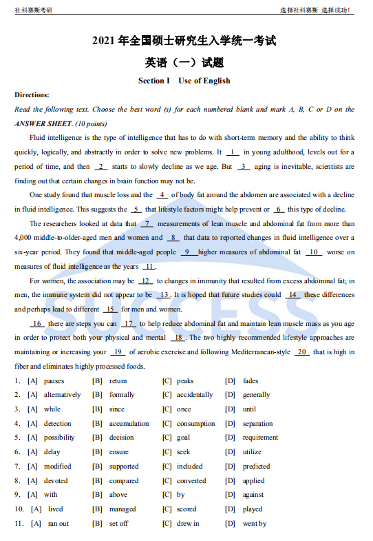 相關熱詞搜索: 2021考研英語一真題解析 2021考研英語 2021考研