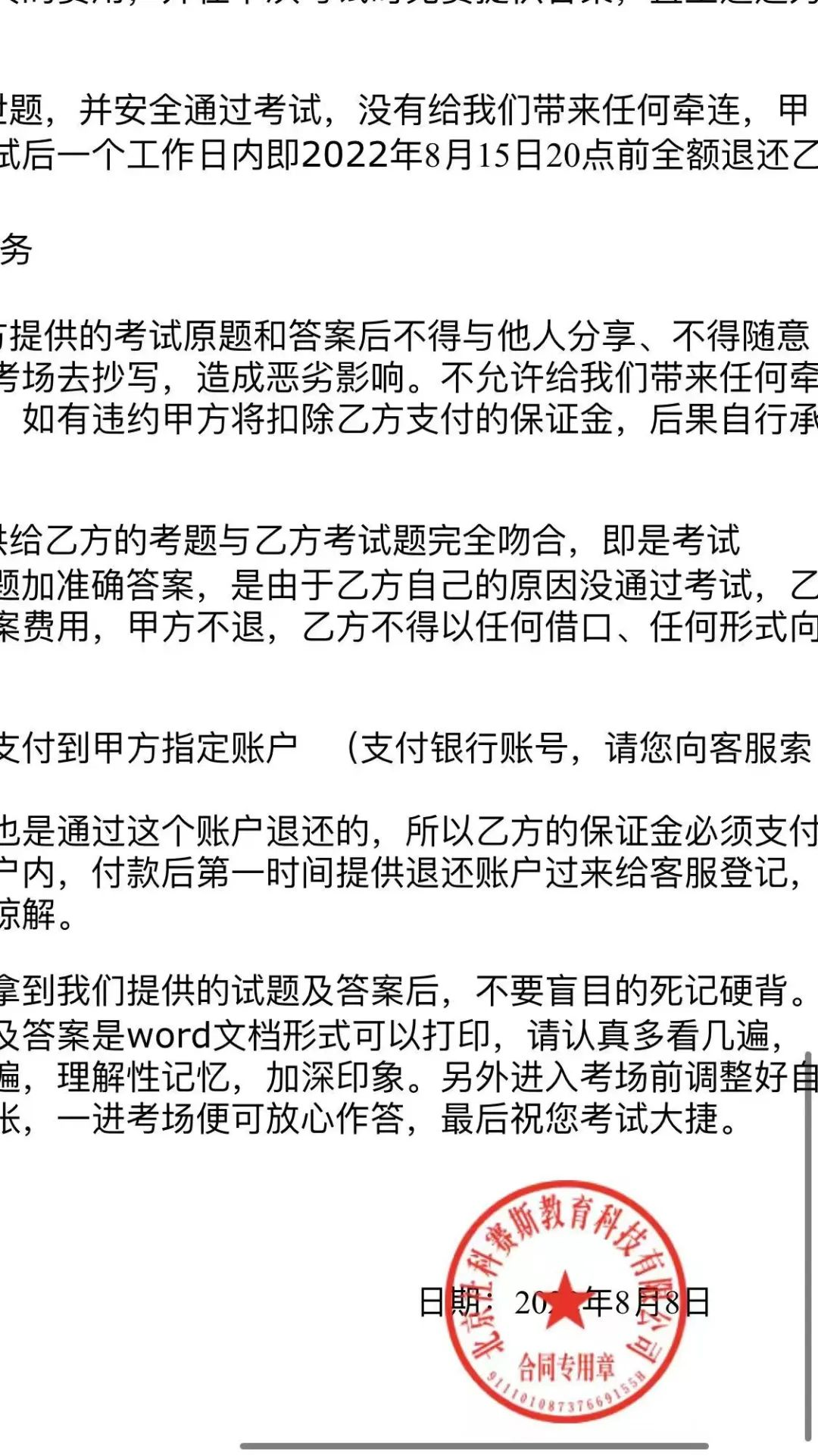 三、本公司未授權(quán)除了全資控股子公司外的任何主體或個(gè)人以“北京社科賽斯教育科技有限公司”名義承攬業(yè)務(wù)、簽署合同、收取款項(xiàng)。客戶若因誤信虛假信息而導(dǎo)致?lián)p失,本公司不承擔(dān)任何責(zé)任。如發(fā)現(xiàn)有疑似冒用行為,可通過(guò)本公司指定的聯(lián)系方式進(jìn)行核實(shí);