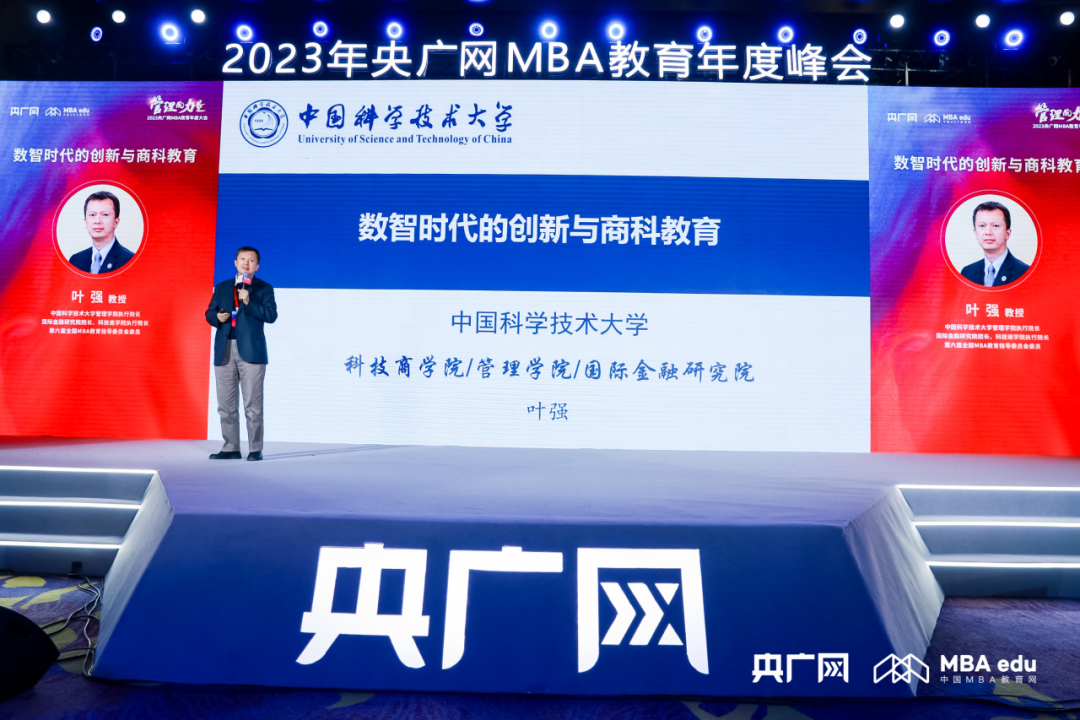中國科學(xué)技術(shù)大學(xué)管理學(xué)院執(zhí)行院長(zhǎng)、國際金融研究院院長(zhǎng)、科技商學(xué)院執(zhí)行院長(zhǎng)、第六屆全國MBA教育指導(dǎo)委員會(huì)委員葉強(qiáng)圍繞“數(shù)智時(shí)代的創(chuàng)新與商科教育”主題進(jìn)行分享。他指出,第四次產(chǎn)業(yè)革命將會(huì)是數(shù)字化革命,物理世界將與數(shù)字世界融合,數(shù)據(jù)將成為重要的生產(chǎn)要素之一,但是技術(shù)無法代替正確的管理方法和思維方式,商科教育的重要性不言而喻。葉院長(zhǎng)表示,新時(shí)代的商科教育要打造懂科技、懂產(chǎn)業(yè)、懂市場(chǎng)、懂資本、懂管理的復(fù)合型科技產(chǎn)業(yè)組織人才,為建設(shè)中國特色、世界一流科技商學(xué)院而奮斗。