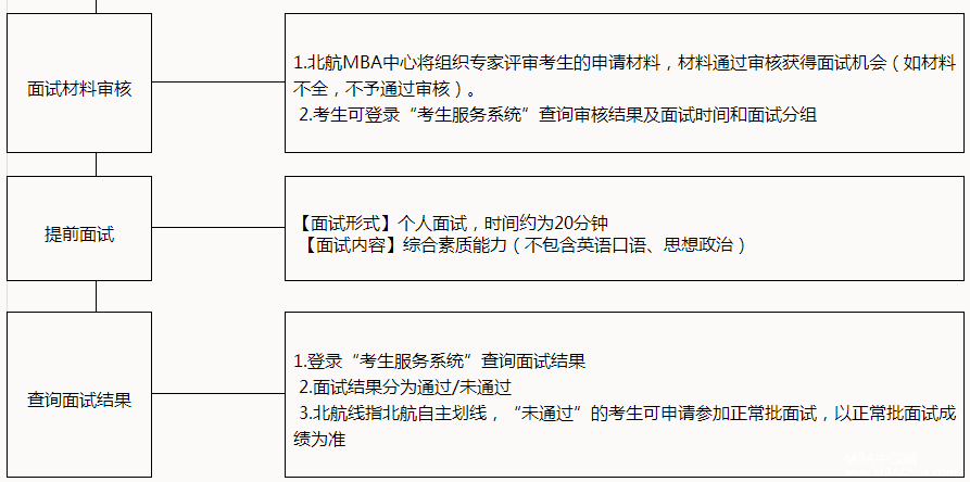未通過考生:第一志愿報考北航MBA,聯考成績達到北航線,可申請參加正常批面試。