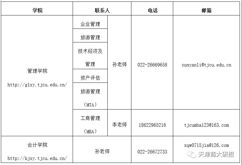 請考生隨時關注我校研究生處網站(http://gs.tjcu.edu.cn/)、研究生招生網(http://yz.tjcu.edu.cn/)、“天津商大研招”微信公眾號以及各學院網站(網址見下),國家復試分數線及相關政策下達后,有關復試、調劑信息將陸續發布。