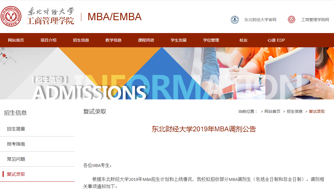 4.具體復試時間、內容和程序等請及時關注東北財經大學MBA教育中心網站通知。