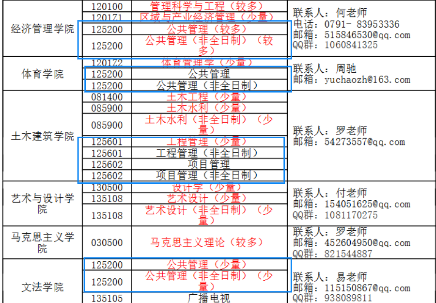近日我校已上報分專業(yè)招生計劃,目前預(yù)計接收調(diào)劑的專業(yè)已在下表中標紅。其他專業(yè)是否接收調(diào)劑需等待國家復(fù)試分數(shù)線公布后才能確定。