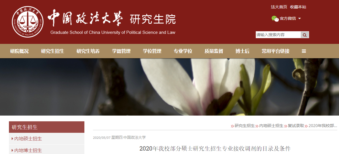 以上是小編整理的“MBA接受調劑的院校 | 中國政法大學2020年接收MBA調劑的通知”,更多關于MBA院校調劑信息,盡在調劑欄目,預祝大家考研成功!