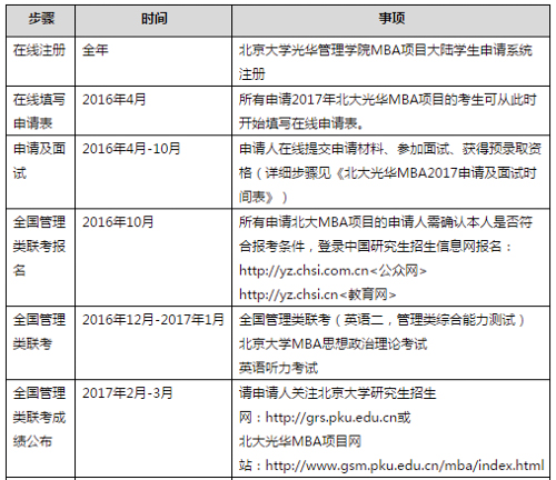 下面是北大光華MBA2017年招生信息。