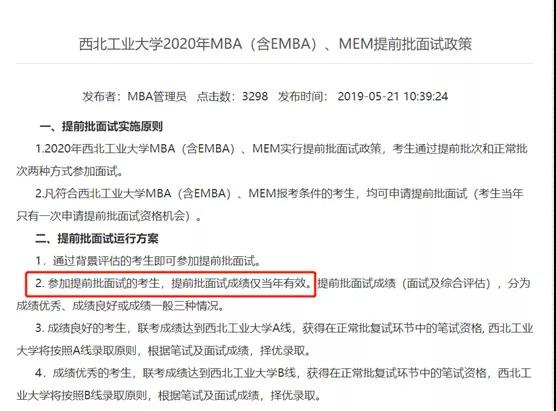 2019年復試政策中強調:所有上線考生均須按本方案在規定時間內參加全環節綜合測試,也就是說,已經通過了電科大MBA提請面試的同學,除了政治和英語,還必須參加復試綜合面試,所有參加面試考生按全日制和非全日制以總成績(初試成績+復試成績)實行從高到低依次擇優錄取。