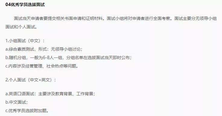 不同的學校略有不同,例如上海外國語大學MBA預復試由管理案例分析、個人中文面試、英語測試(僅限報考全日制英文MBA、非全日制英文MBA的考生參加)三個環(huán)節(jié)構成。