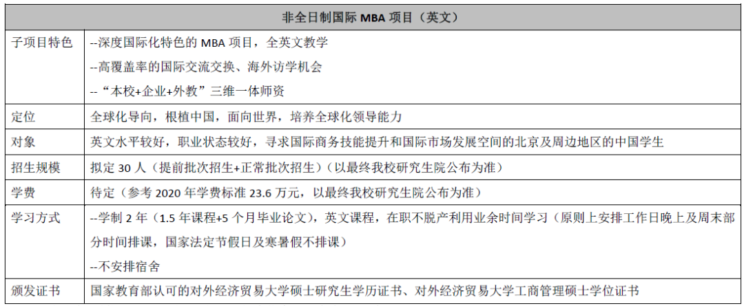 1.開放五個子項目招生:全日制國際MBA項目、非全日制國際MBA項目(英文)、非全日制MBA項目(中文)、EMBA項目和創新創業MBA實驗班。